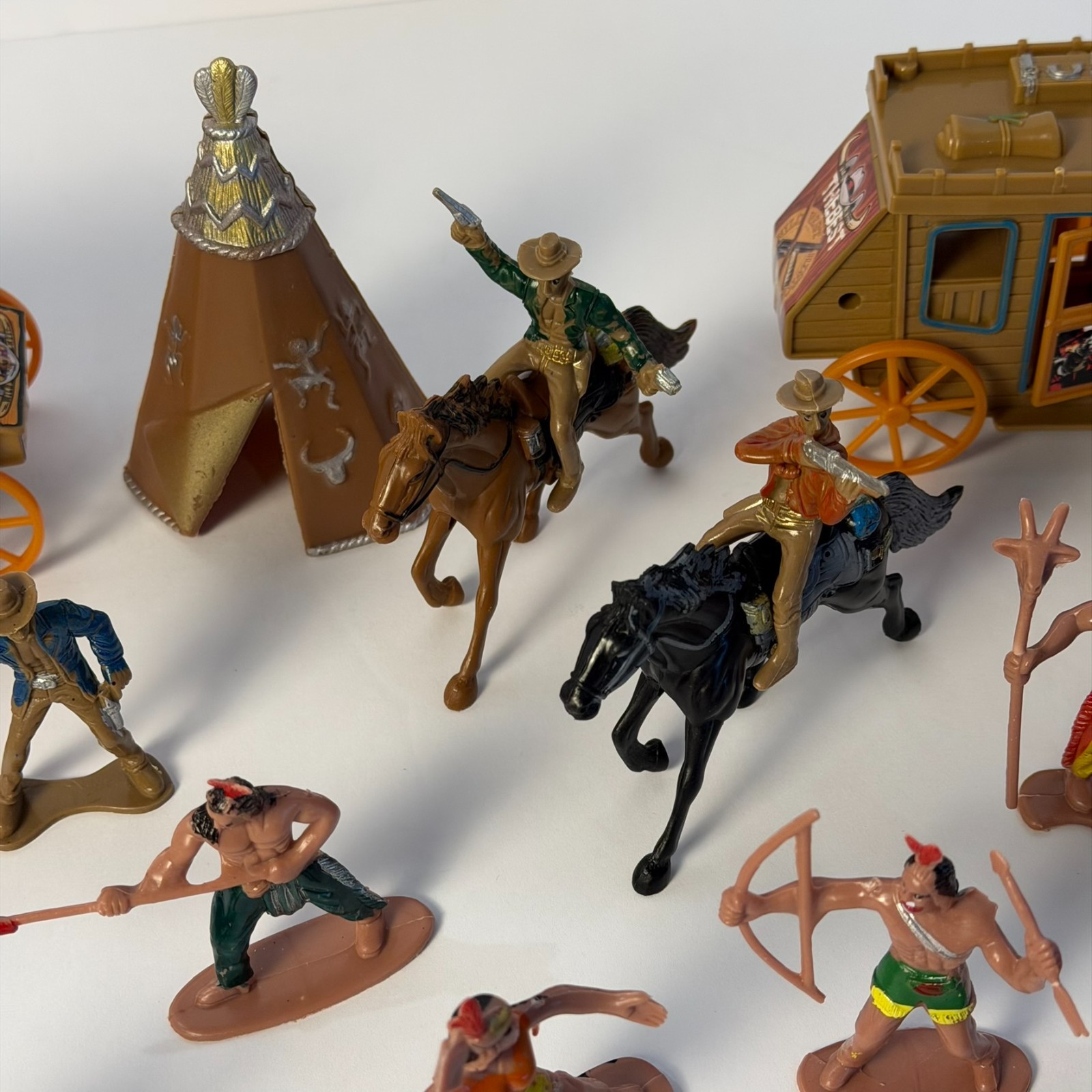 Lot Vintage Western Cowboys Indians Toy Soldiers Plastic Figures Accessories