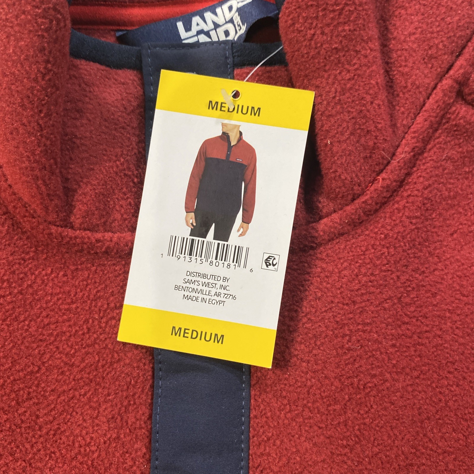 как выглядит NWT Lands End Fleece Pullover 1/4 Button Burgundy Navy Mens Medium FREE SHIP фото