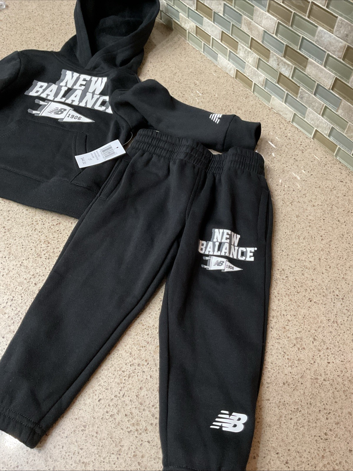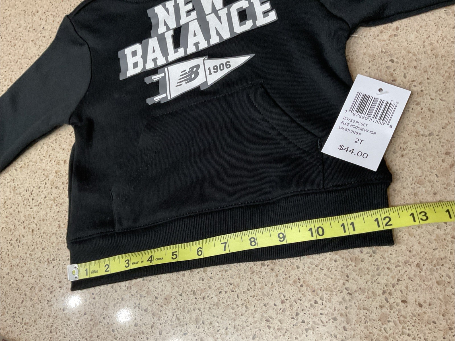 Boys New Balance 2Pc Set Sz 2T Fleece Hoodie Jogger Pant Set 24x12 Black New