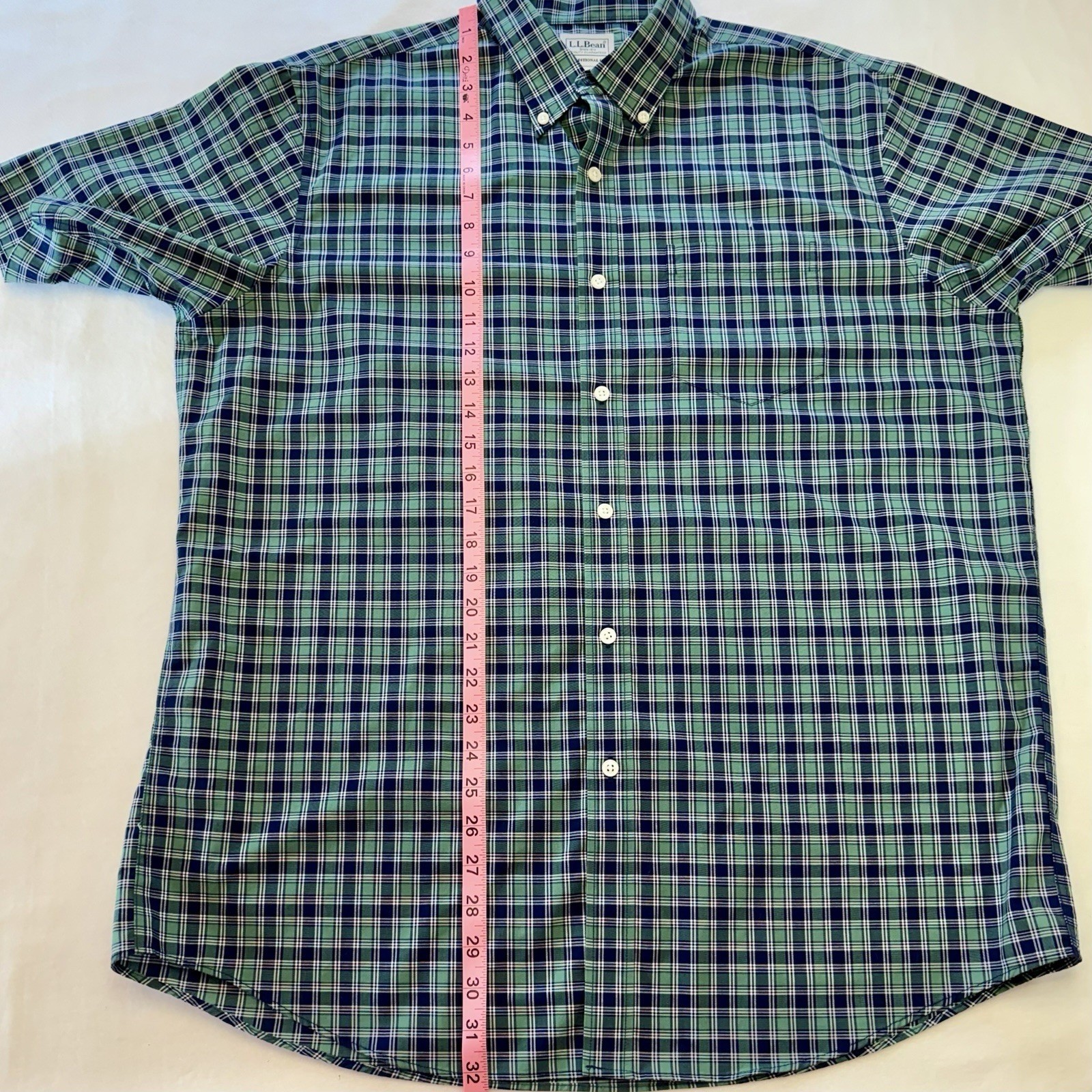 как выглядит L.L. Bean Plaid Button Down Mens L Traditional Fit Green Blue Workwear Outdoors фото