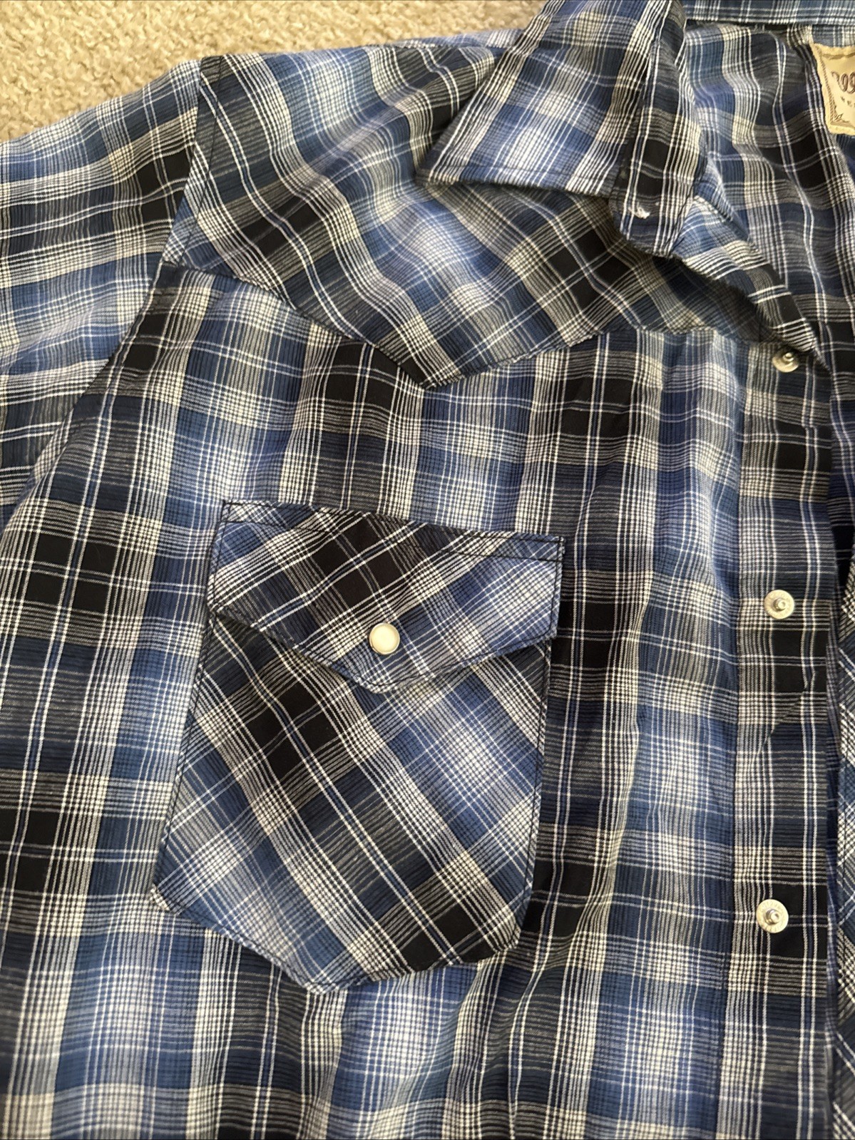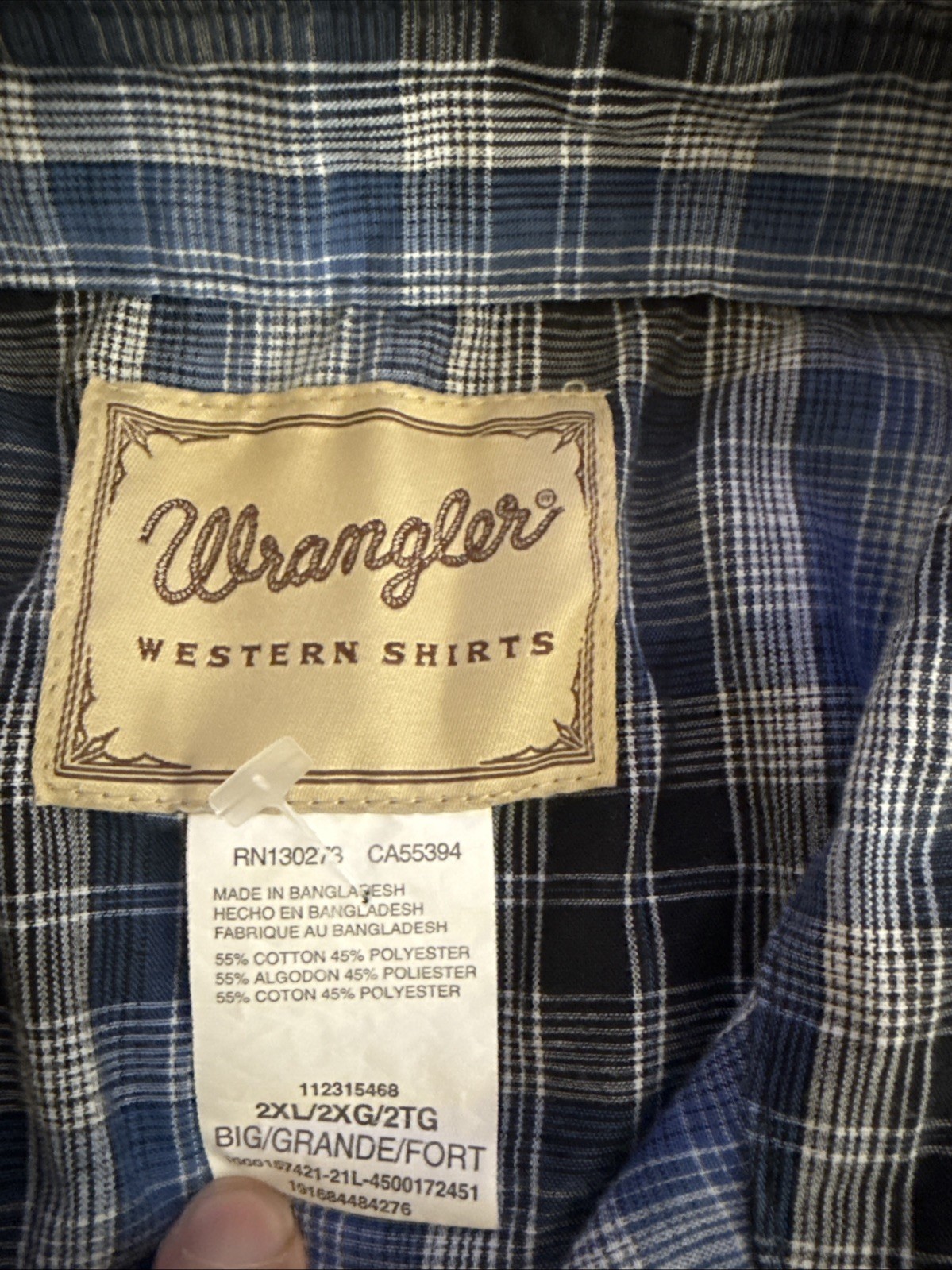 Wrangler Western Shirt Men s XXL Blue Plaid Pearl Snap Short Sleeve Cowboy Rodeo