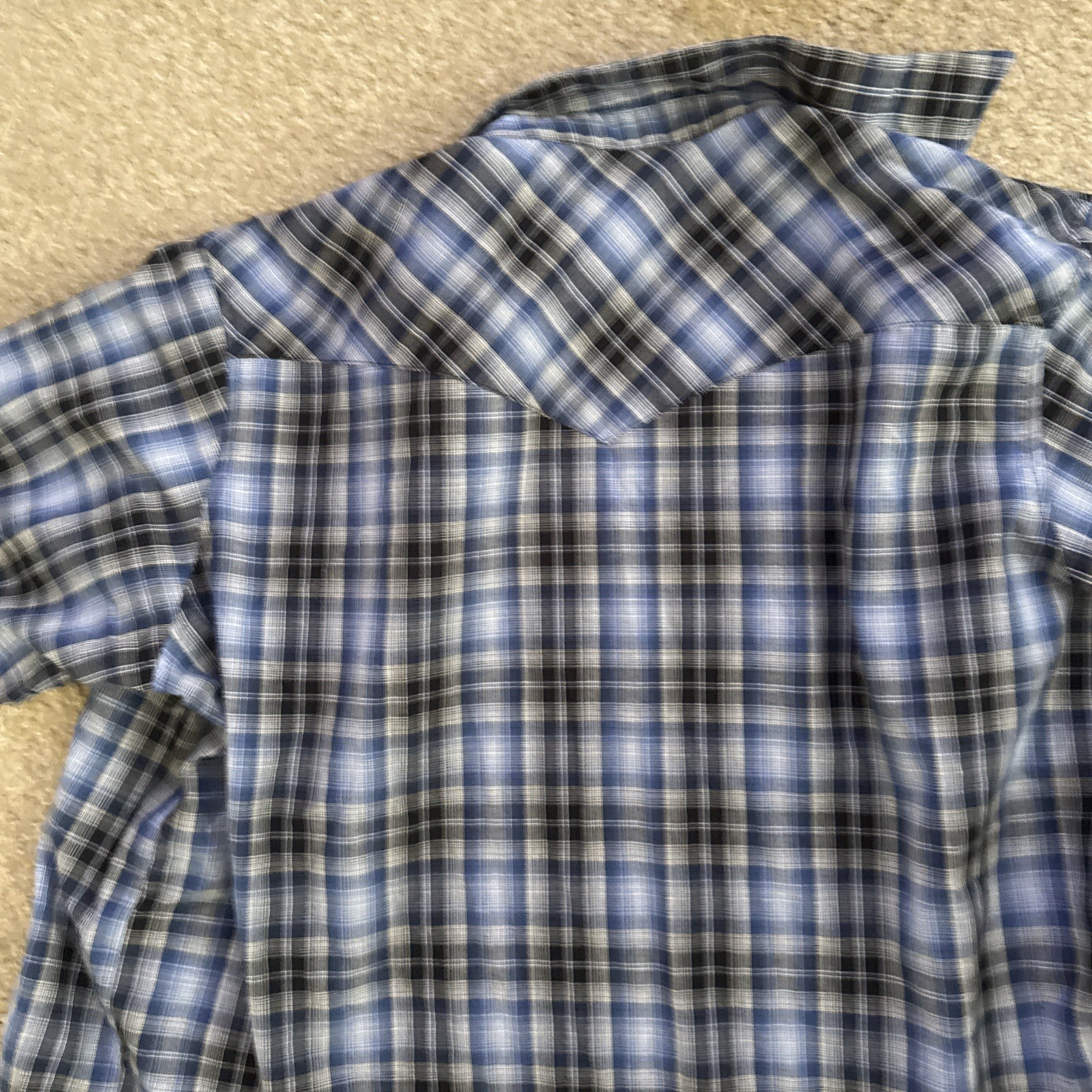 как выглядит Wrangler Western Shirt Men s XXL Blue Plaid Pearl Snap Short Sleeve Cowboy Rodeo фото