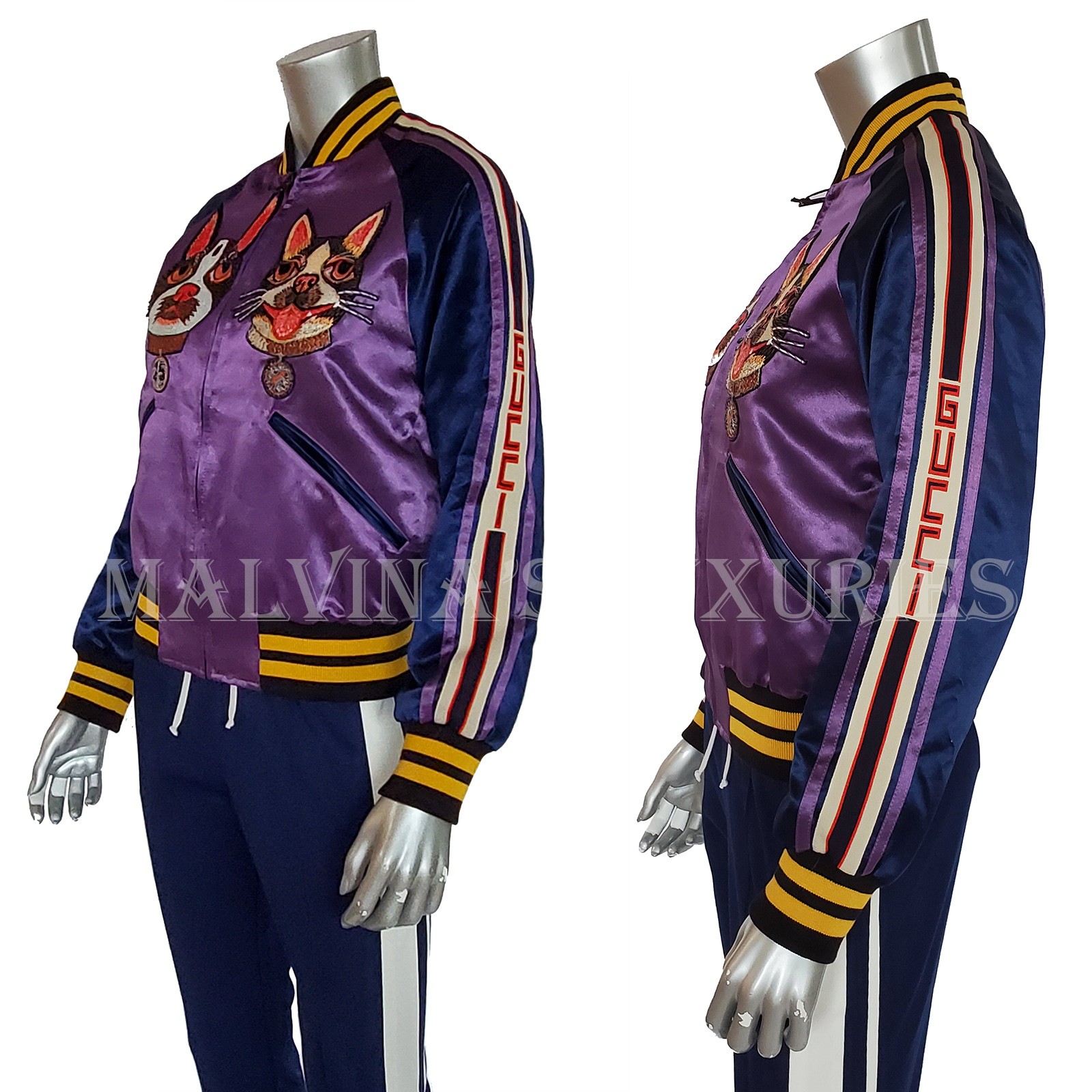 как выглядит GUCCI JACKET BOMBER BOSCO ORSO PATCHES PURPLE SATIN w LOGO DETAIL 3,500 sz 42 6 фото