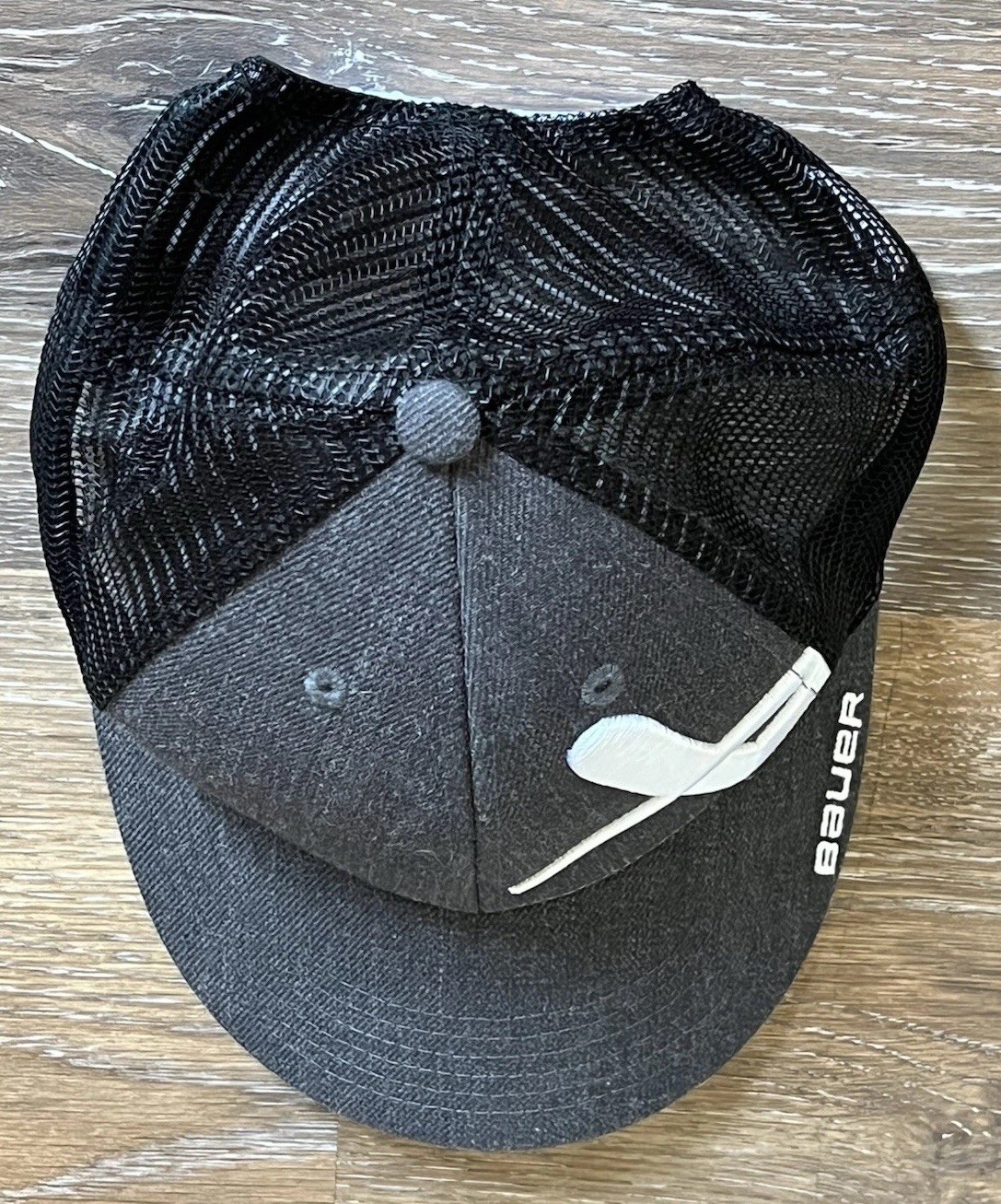 как выглядит Bauer Hockey Core Side Logo Youth Gray Black Mesh Snapback Cap фото