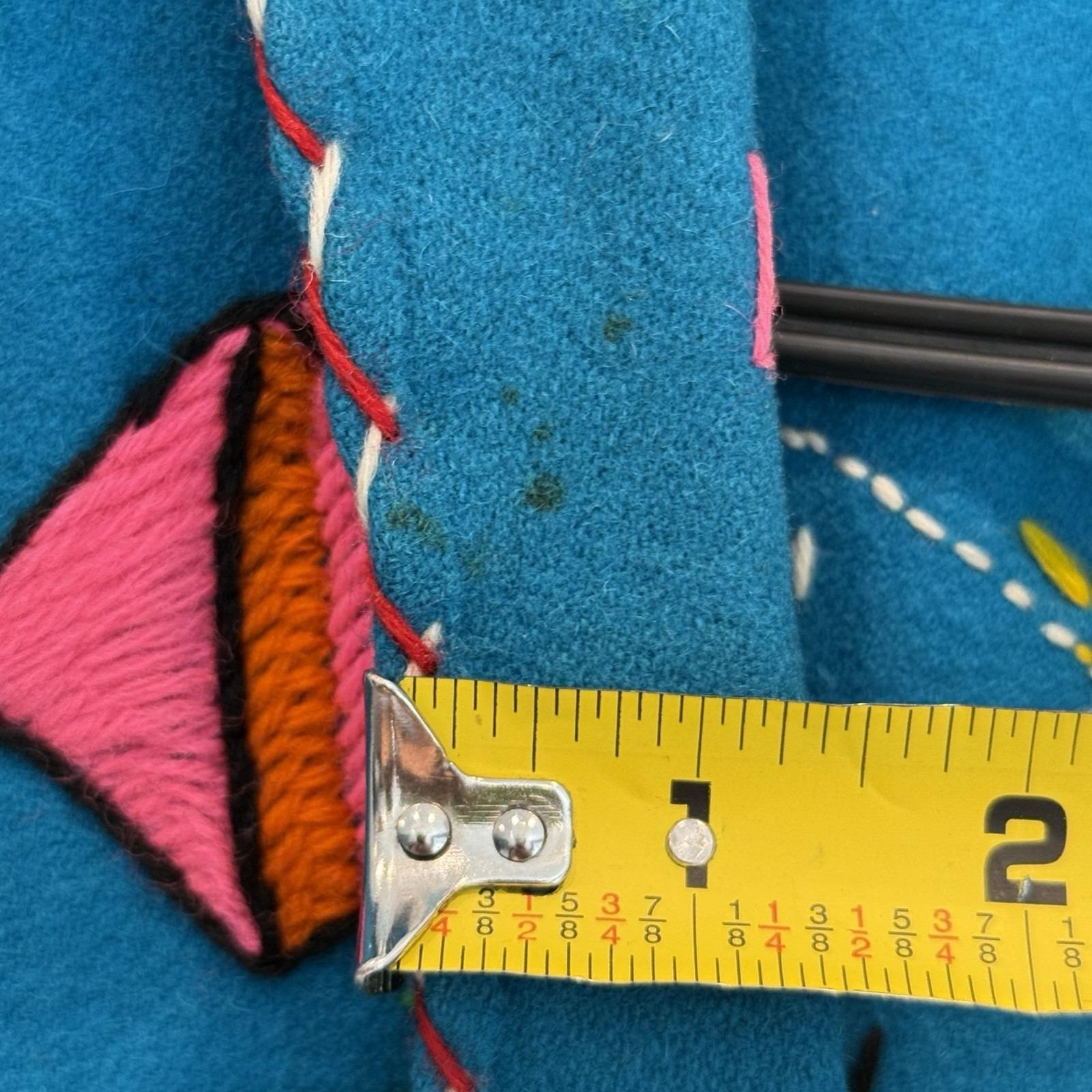 как выглядит Vintage Azteca Mexican Wool Souvenir Jacket Turquoise Hand Embroidered Folk Art фото