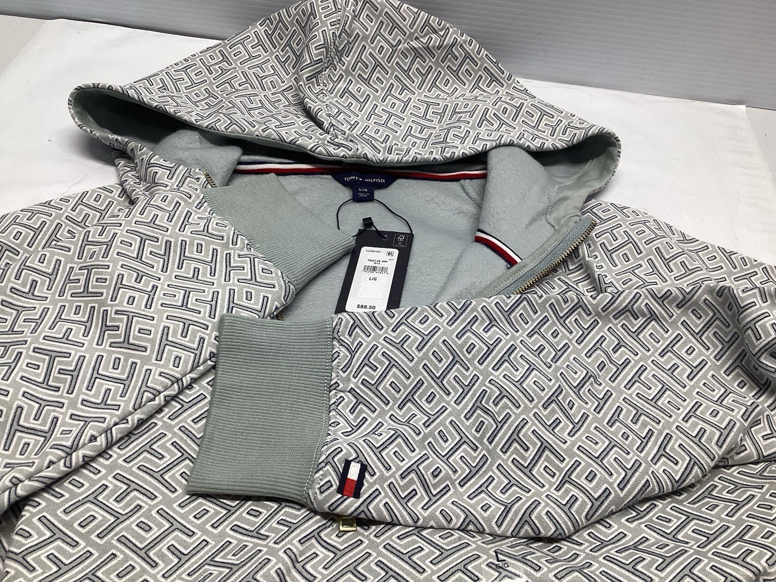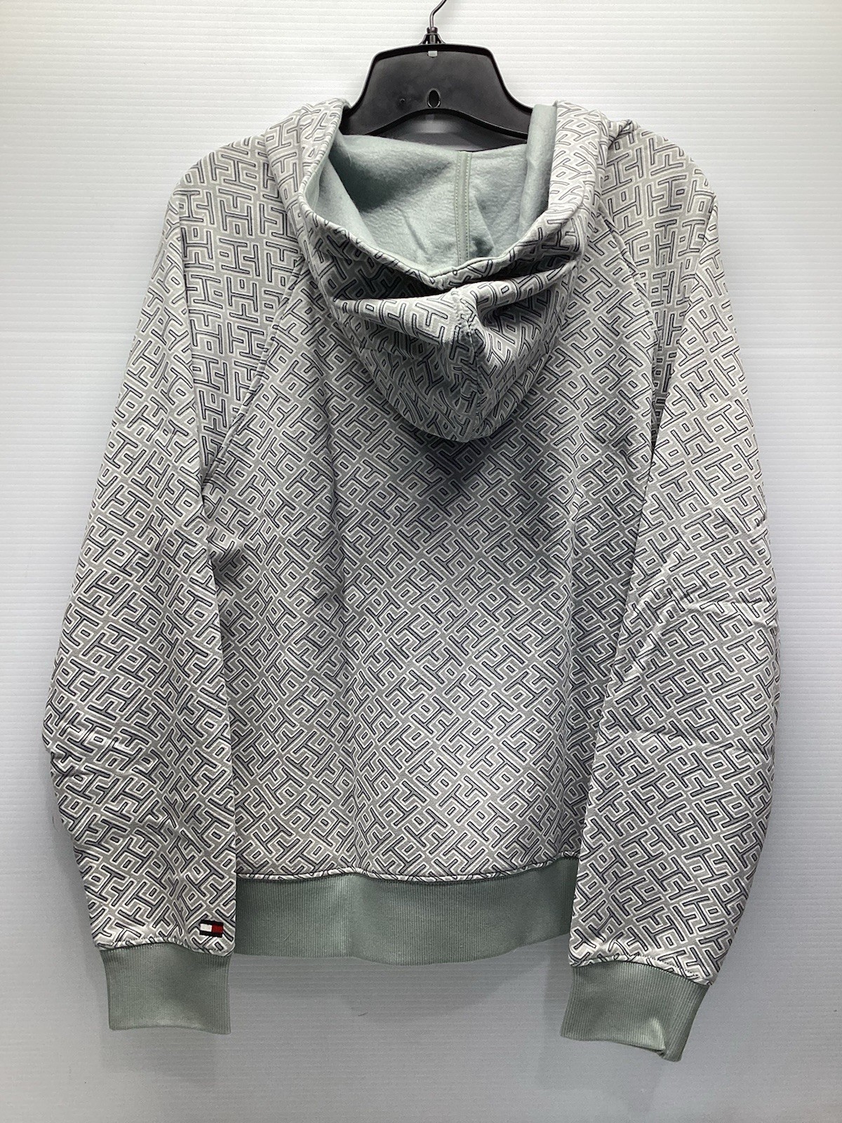 как выглядит Tommy Hilfiger Half Zip Hoodie All Over Print Logo Sweatshirt Womens Size L X2 фото
