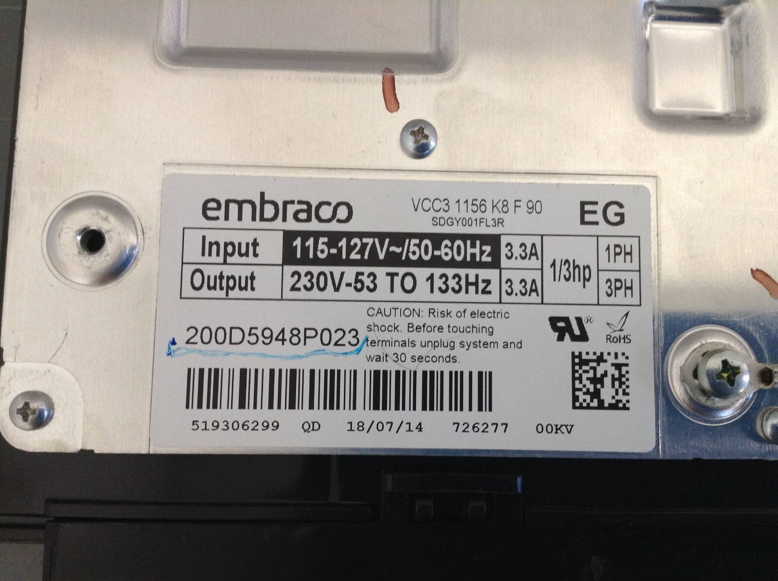 MPN: 200D5948P023, VCC3 1156 K8 F 90, WR87X29409