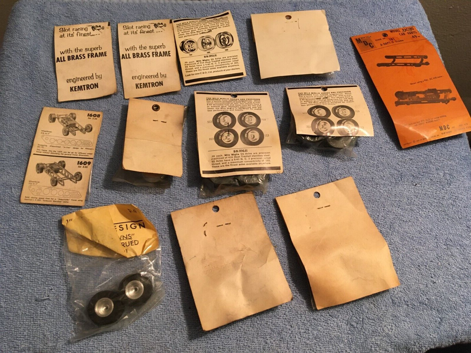 VINTAGE NOS SLOT CAR PARTS ACCESSORIES LOT KEMTRON DALXO BUZ MILA MIGLIA ETC