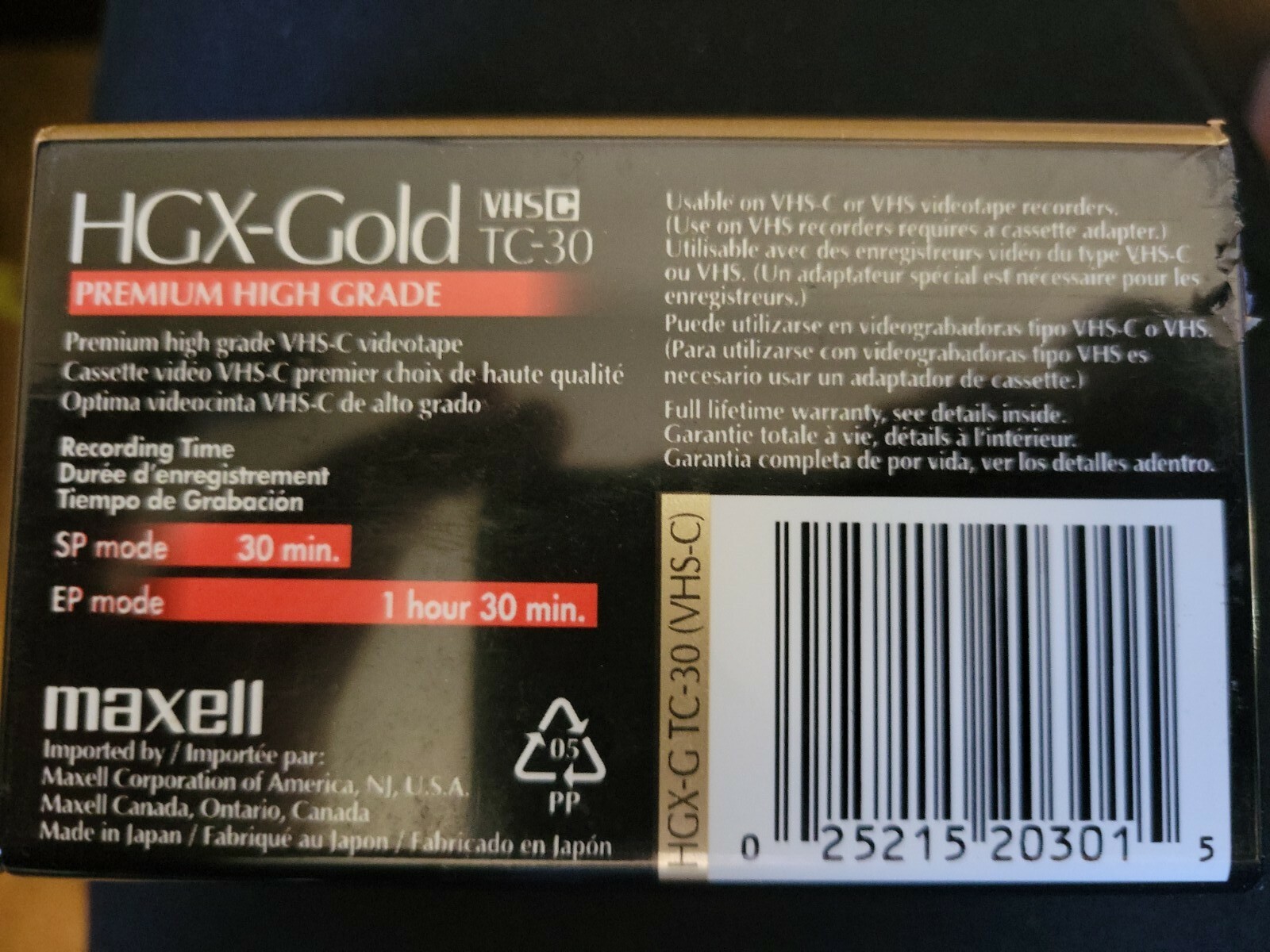 Maxell VHS-C HGX-Gold TC-30 Blank Camcorder Video Tape New 30-90 Min