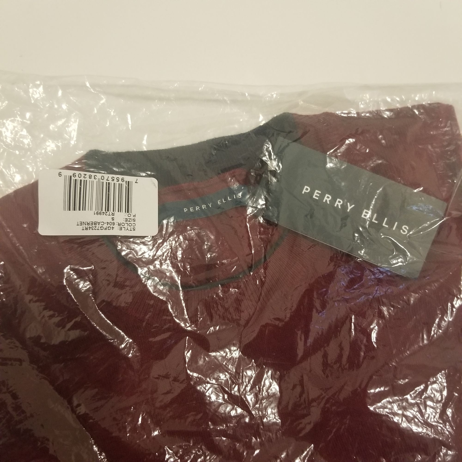 как выглядит NWT PERRY ELLIS SOLID TECH KNIT SWEATER TEE COLOR CABERNET SIZE S фото