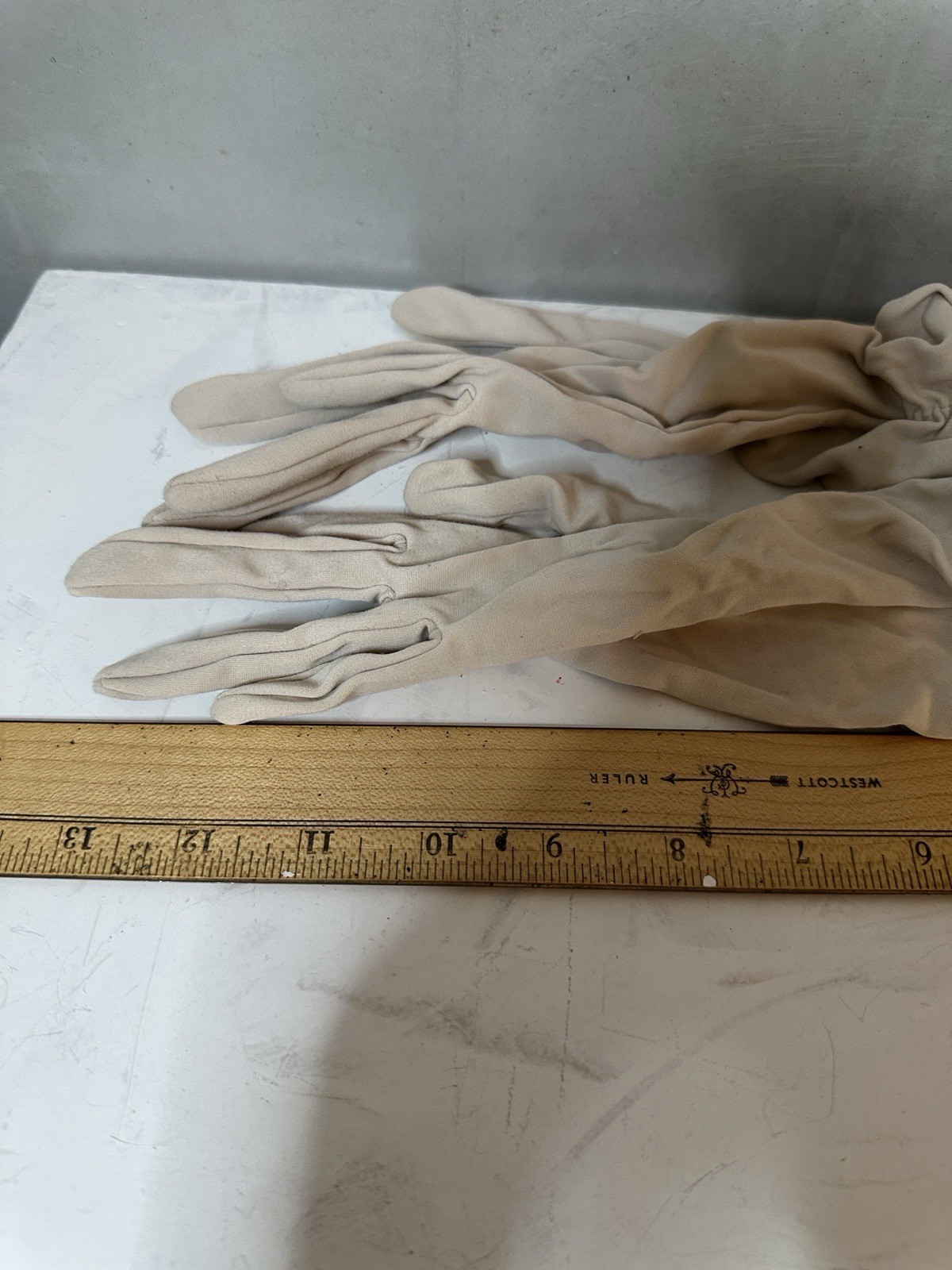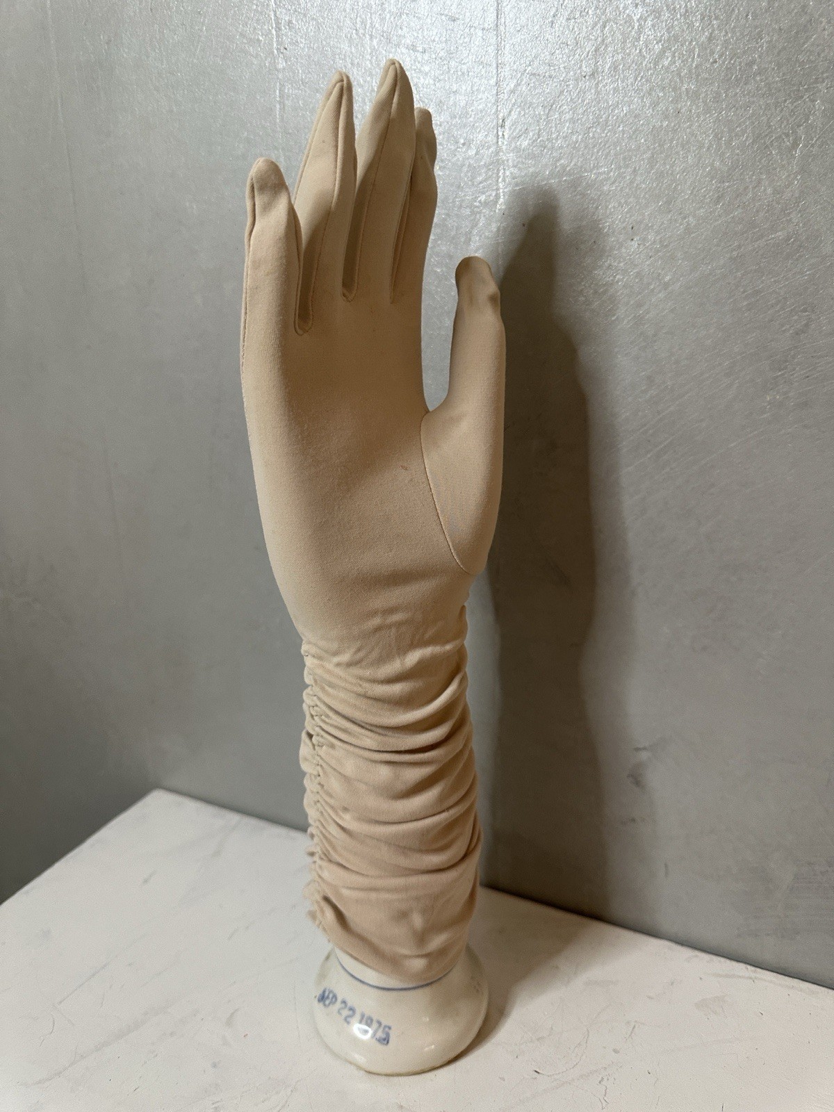 как выглядит Vintage 60s VAN RAALTE IVORY Gloves with elastic ruched sides 7 фото