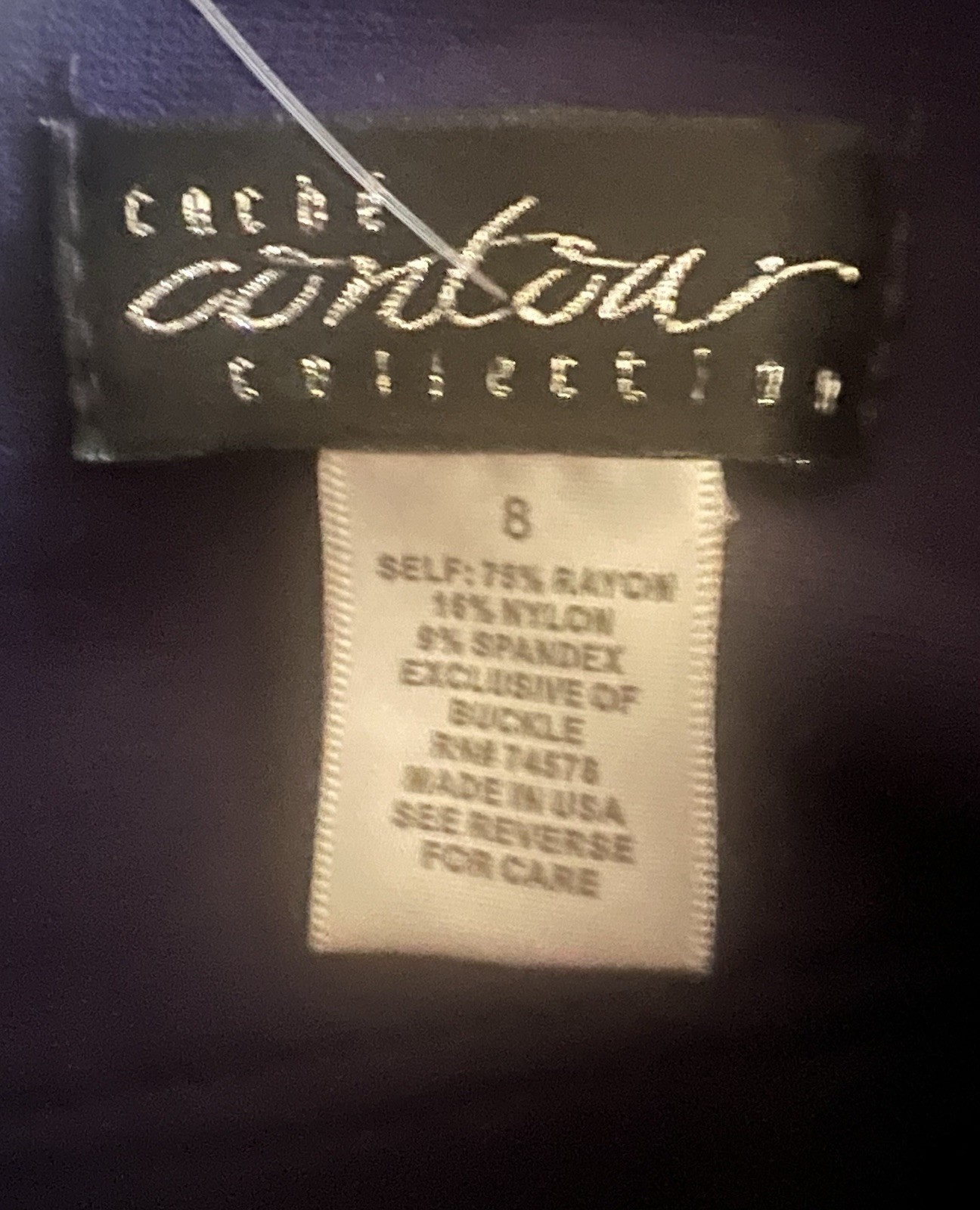 как выглядит VTG NWT CACHET COUTURE COLLECTION Navy Pencil Skirt BODYCON Silver Buckle Sz8 фото