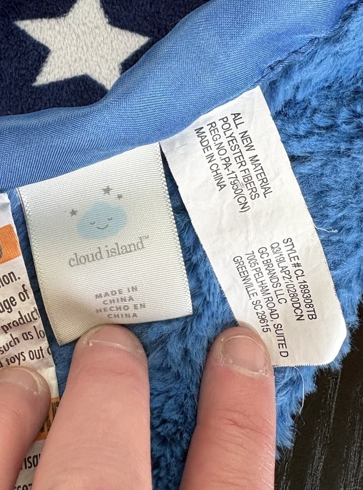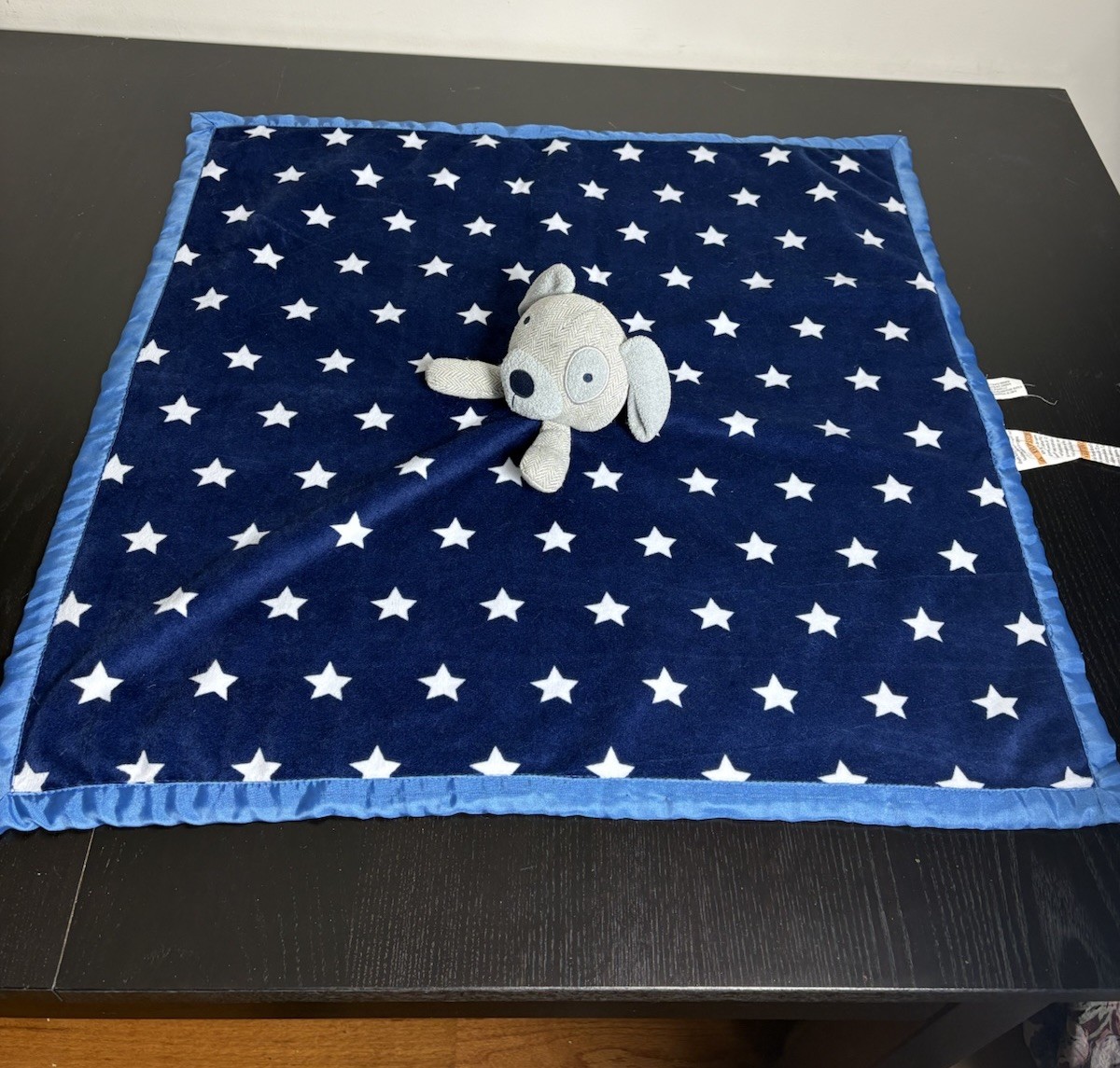 как выглядит CLOUD ISLAND Large Size Plush Gray Dog Baby Security Blanket Lovey Blue Stars фото