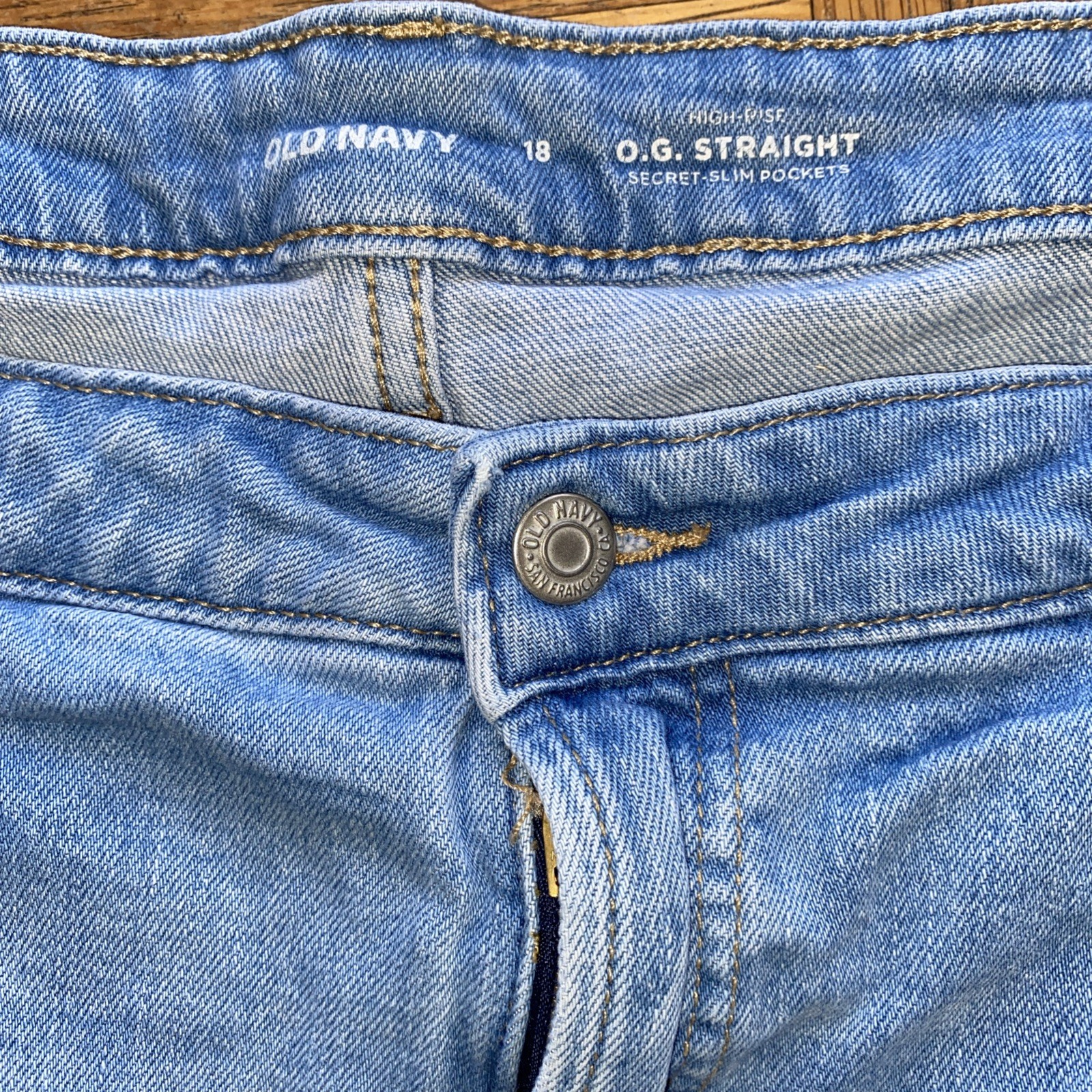 как выглядит EUC Old Navy Distressed OG Straight Jeans Extra High Rise Size 18 w/25 Inseam фото