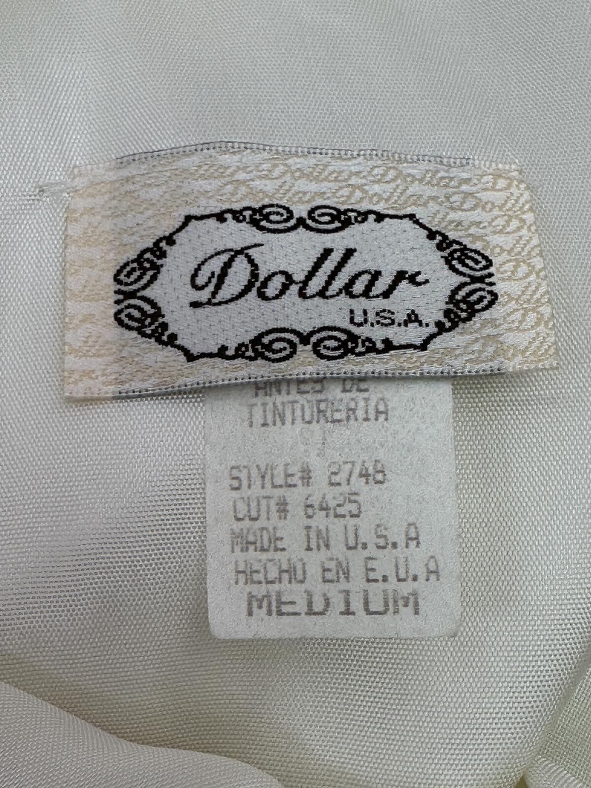 как выглядит Vtg 1990s Sz M Ivory Fit Flare Tea Length Dress Wedding Bridal Organza Lace фото