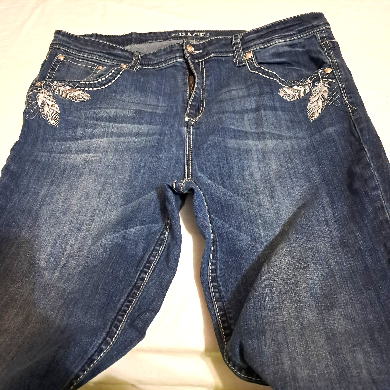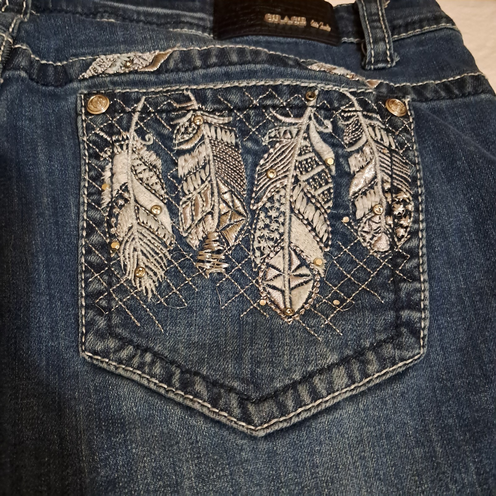 как выглядит Grace In LA Womens Embellished Straight Western Cowgirl Blue Jeans Size 22 фото