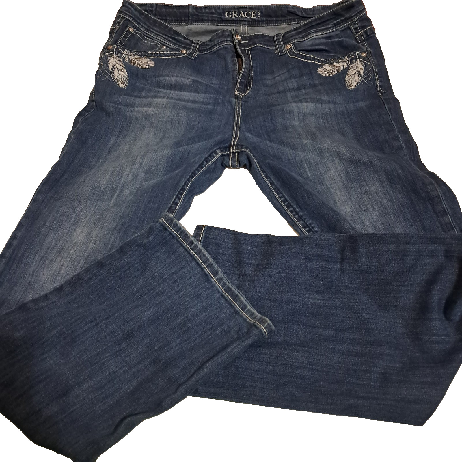 Grace In LA Women's Embellished Straight Western Cowgirl Blue Jeans Size 22