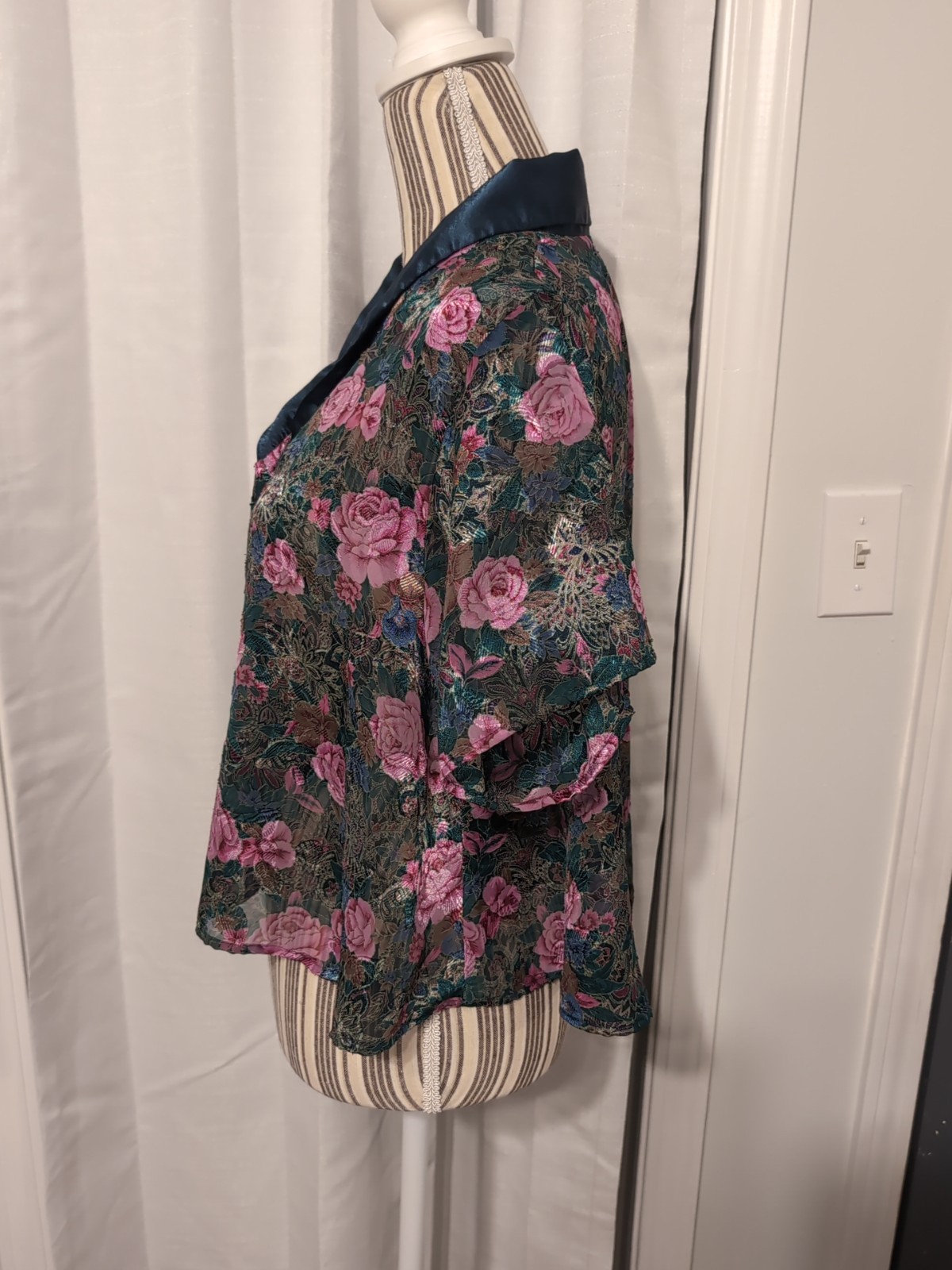 как выглядит Victorias Secret Vintage Gold Label Floral Pink Green Sheer Pajama Top Small фото