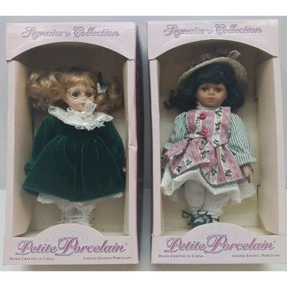 как выглядит 2x SIGNATURE COLLECTION, PETITE PORCELAIN DOLLS, HAND-CRAFTED, NIB фото
