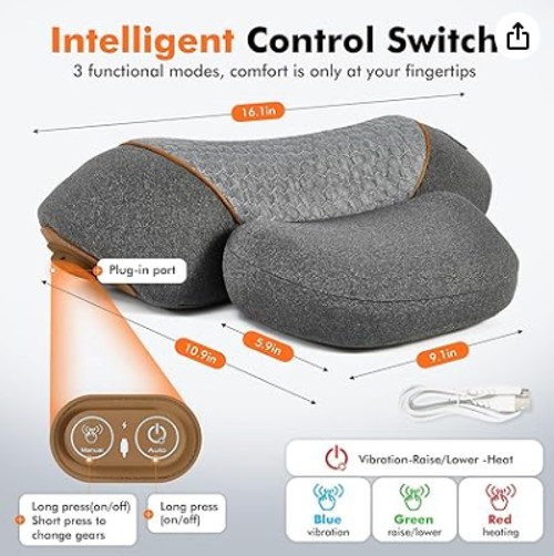 3 In 1 Rechargeable Neck Massager Pillow Hump Corrector for Shoulder Pain Relief