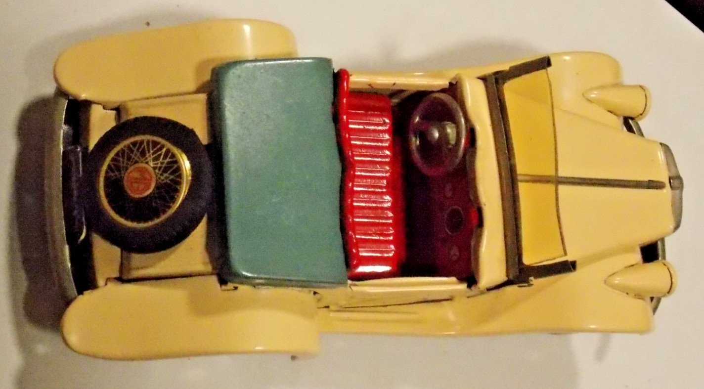 Vintage Toy Car Japan SSS Tin Litho Friction 1955 Era MG Midget Roadster w/ Box