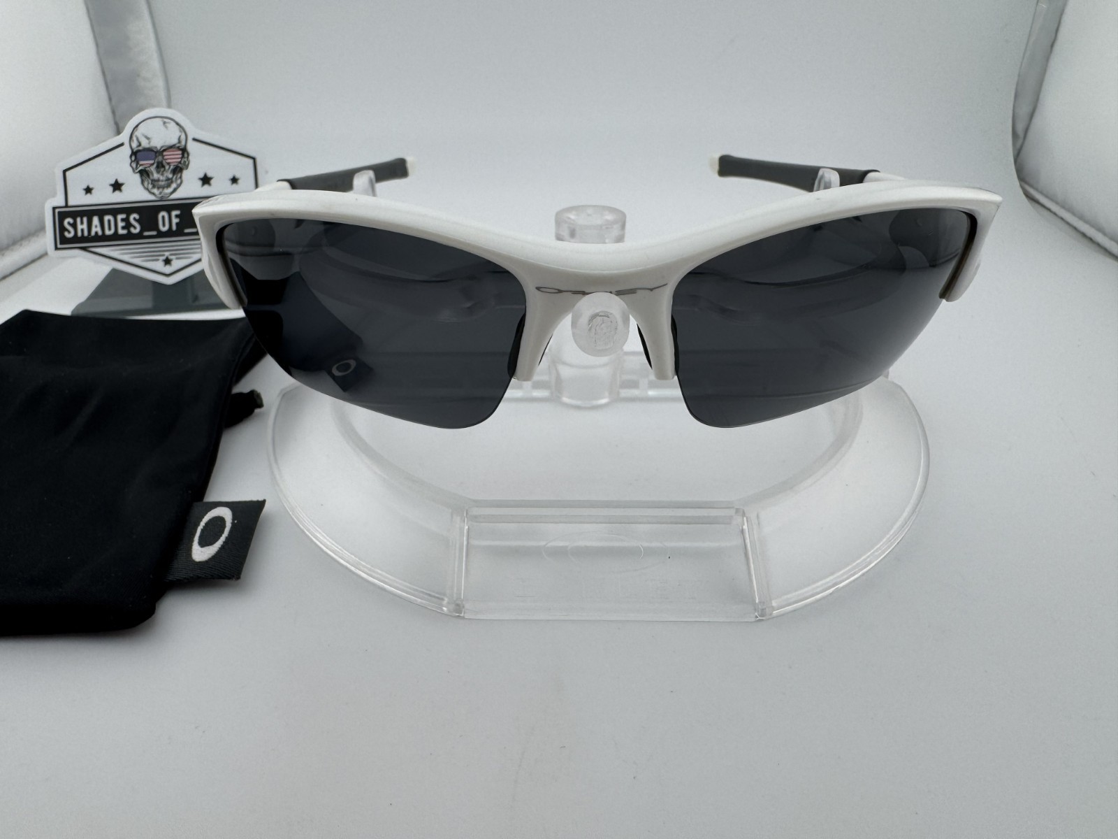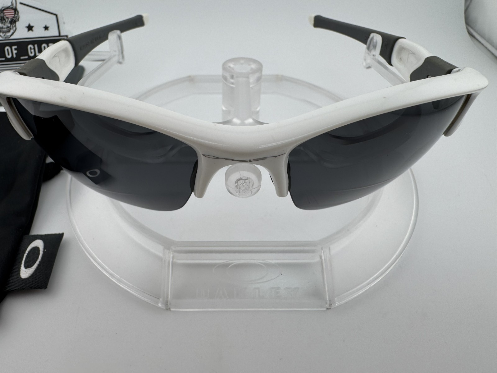 OAKLEY FLAK JACKET XLJ POLISHED WHITE W/ BLACK AFTERMARKET POLARIZED SUNGLASSES