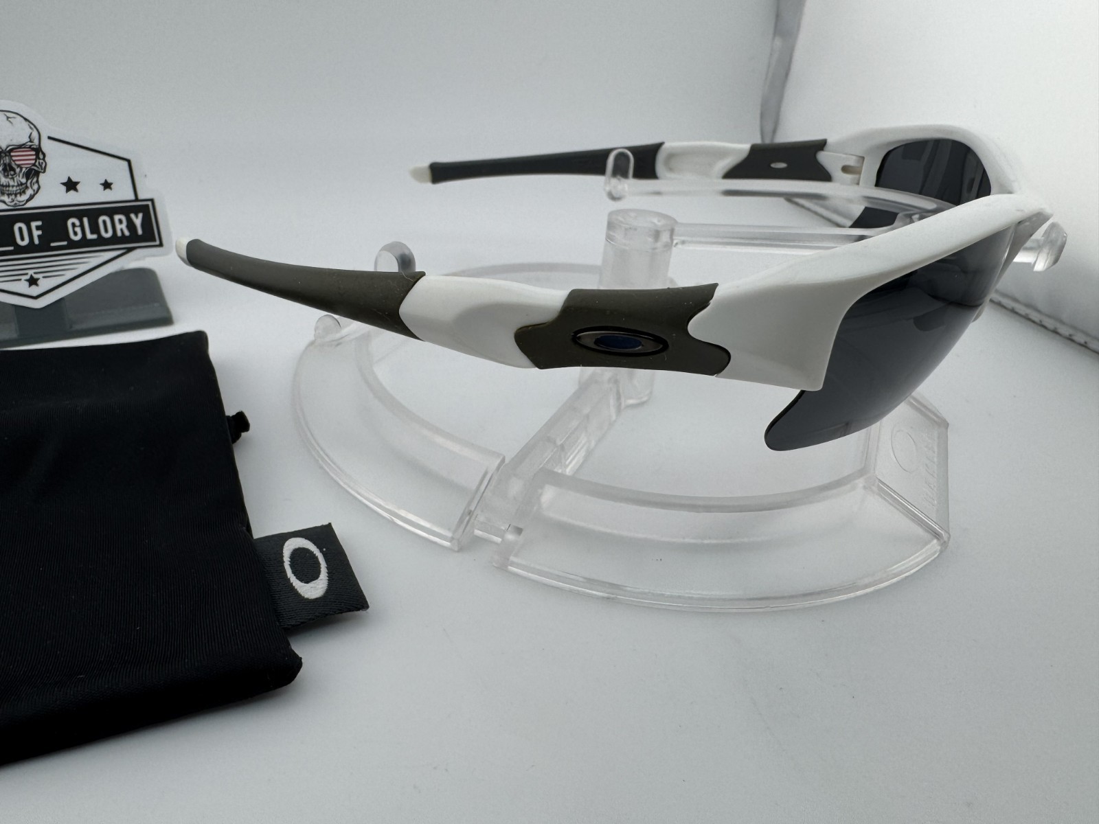 как выглядит OAKLEY FLAK JACKET XLJ POLISHED WHITE W/ BLACK AFTERMARKET POLARIZED SUNGLASSES фото