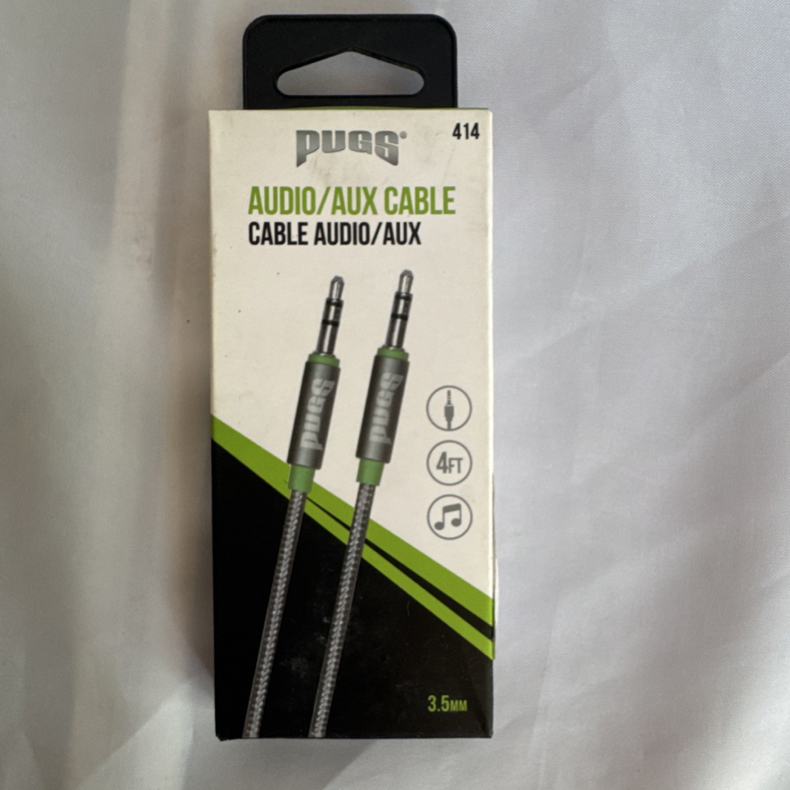 Pugs 414 Audio AUX Cable 3.5mm Male to Male 4ft Gray Audio Connectivity Cord