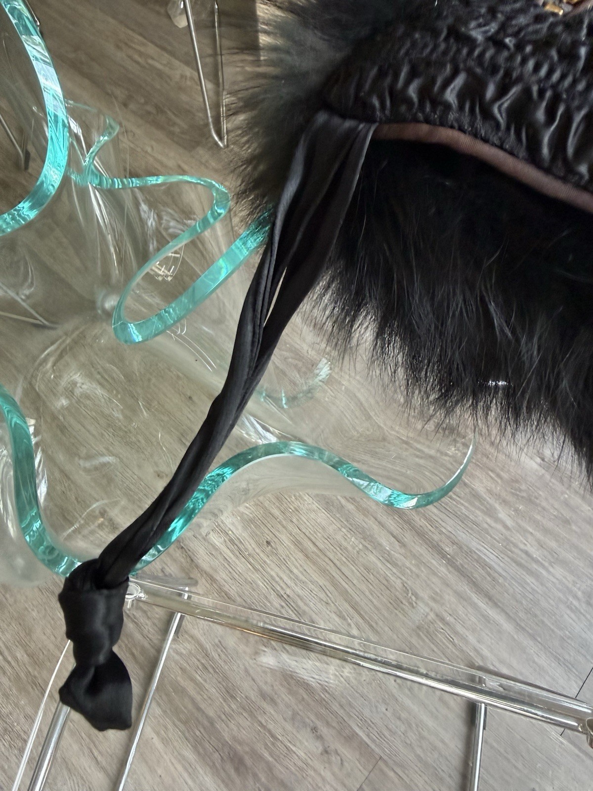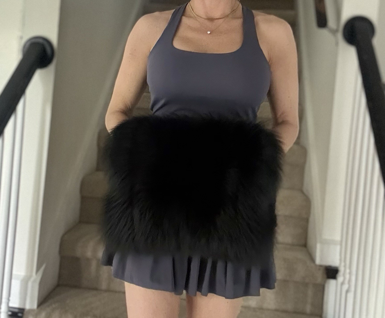 Vintage Black Fox Fur Muff Hand Warmer Wristlet Purse Hidden Zipper Pocket