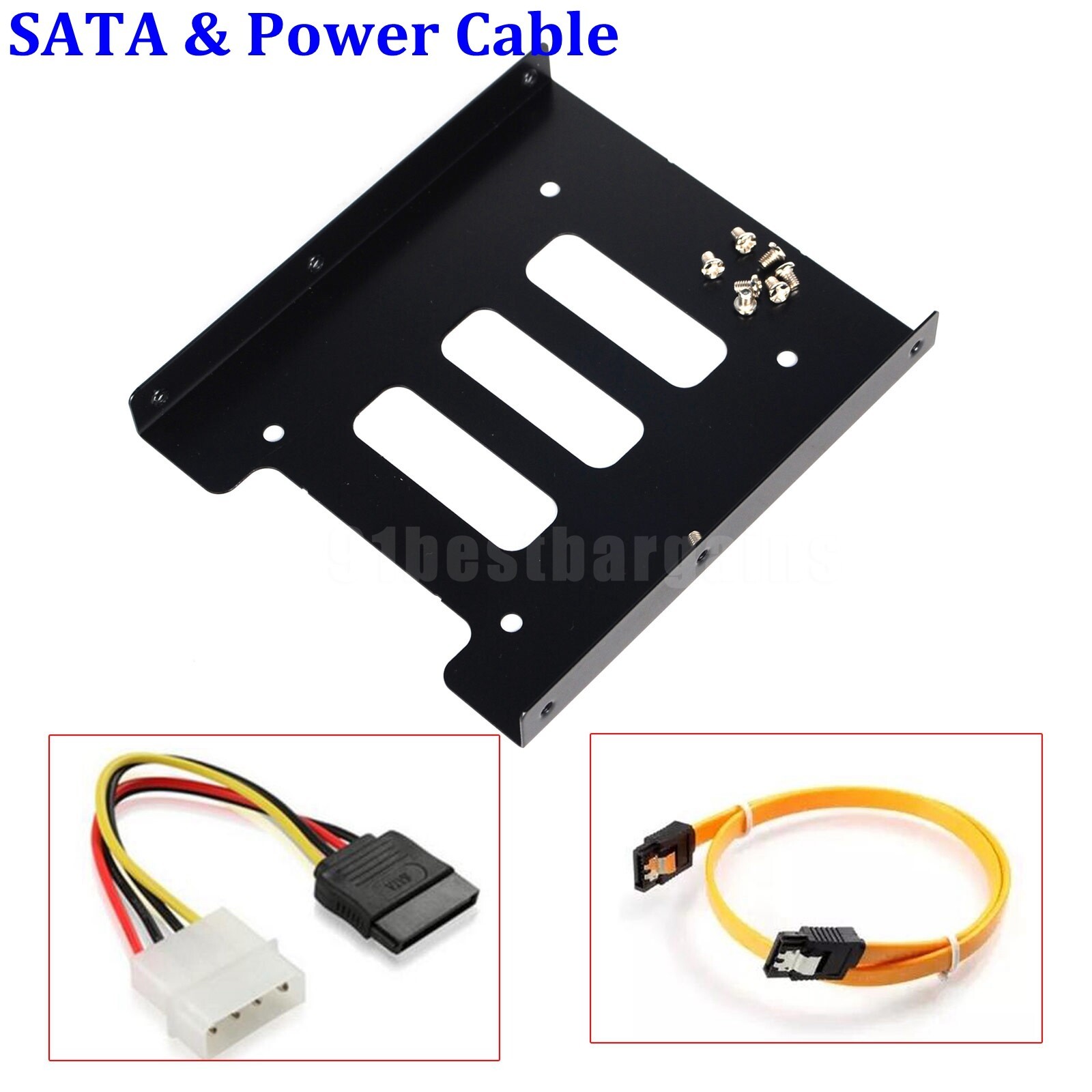 2.5 to 3.5 Bay SSD Metal Hard Drive HDD Mounting Bracket Adapter Holder Cable