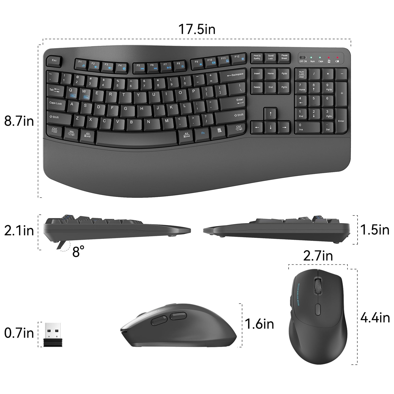 Wireless Keyboard and Mouse Combo,2.4G Full Size Wave Keys Ergonomic Keyboard...