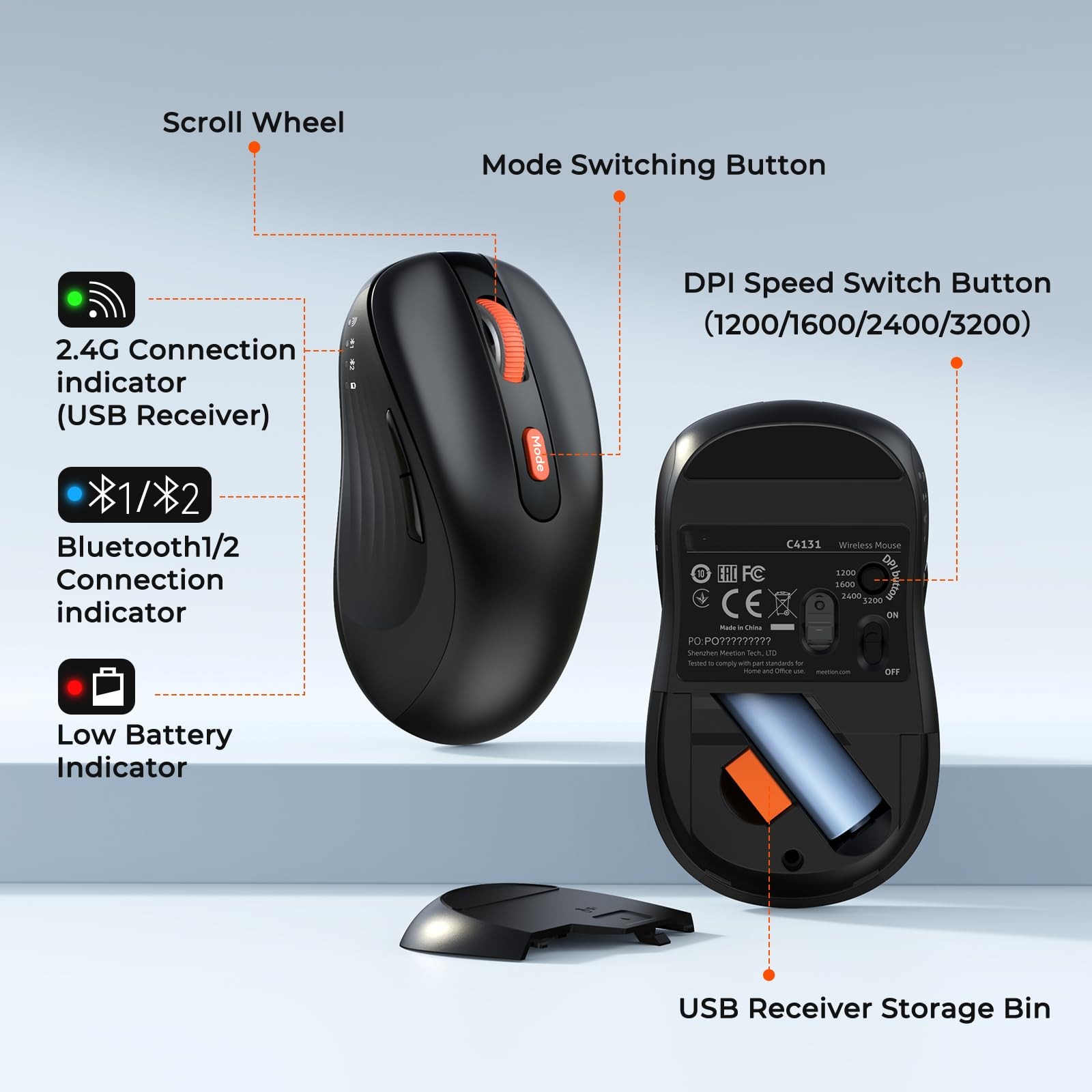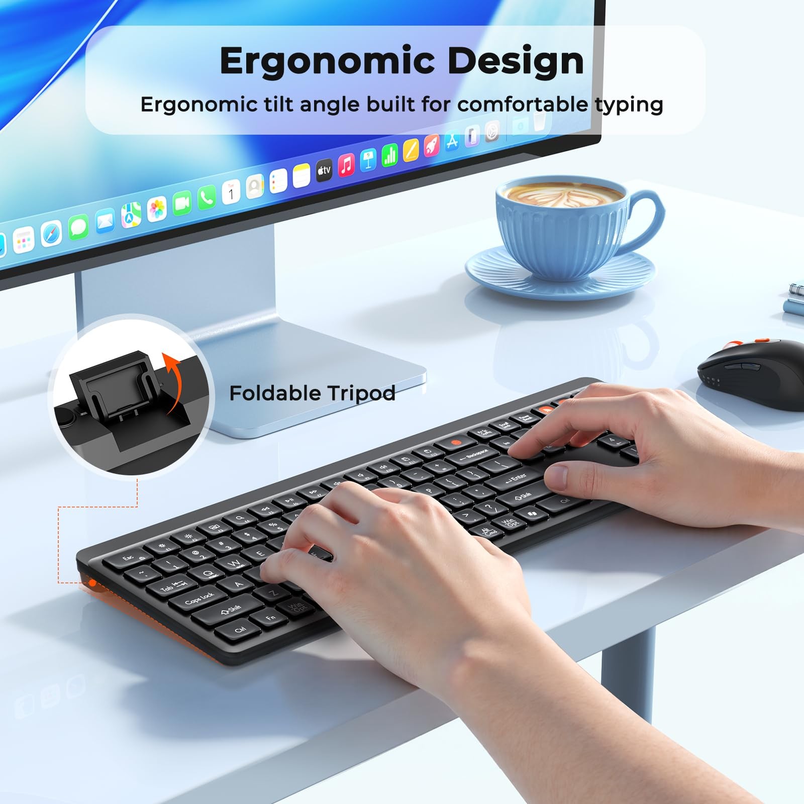 Bluetooth Keyboard and Mouse, 2.4G Dual Bluetooth Multi Device, Full Size S...