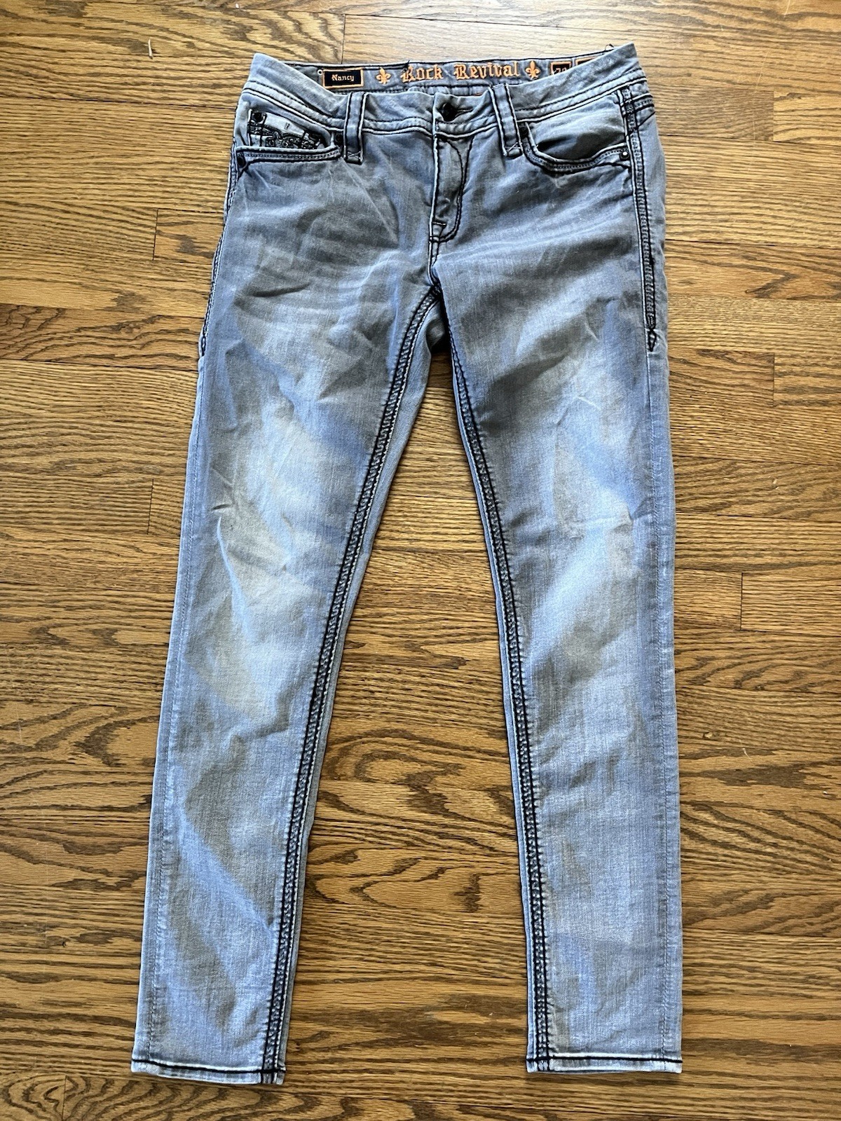 Rock Revival Jeans Nancy Skinny Dark Wash Embroidered Jeweled Womens 29 30x31