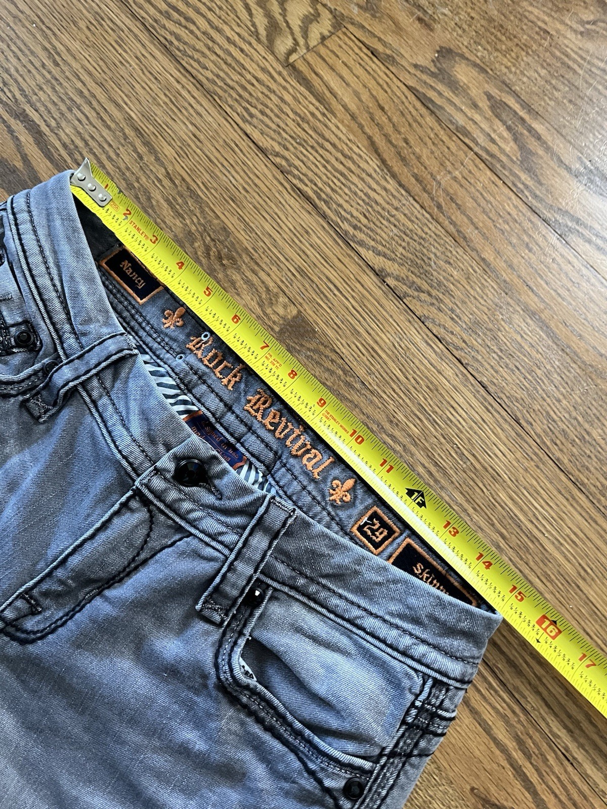 как выглядит Rock Revival Jeans Nancy Skinny Dark Wash Embroidered Jeweled Womens 29 30x31 фото