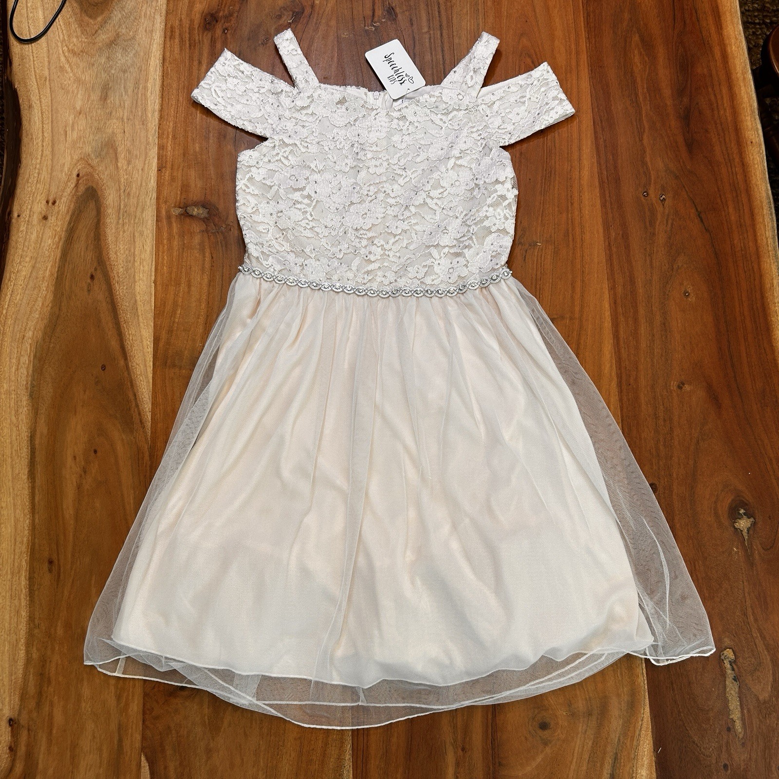 Speechless Kids Girls Lace Flare Sleeveless Dress Size 16 Blush Pink Jewel Waist