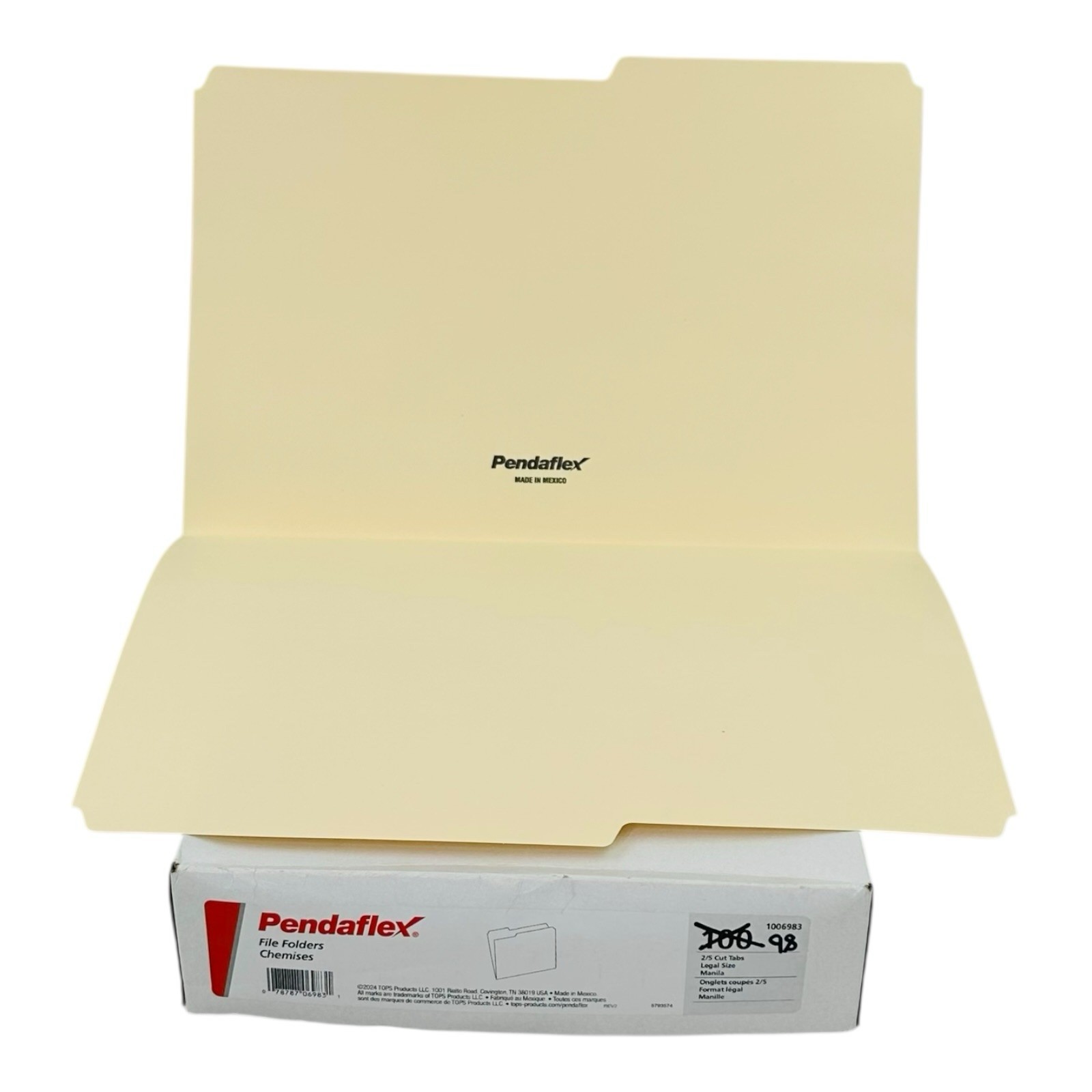 98 Folders Pendaflex Legal Size 2/5 Cut Top Tab Manila File Folders