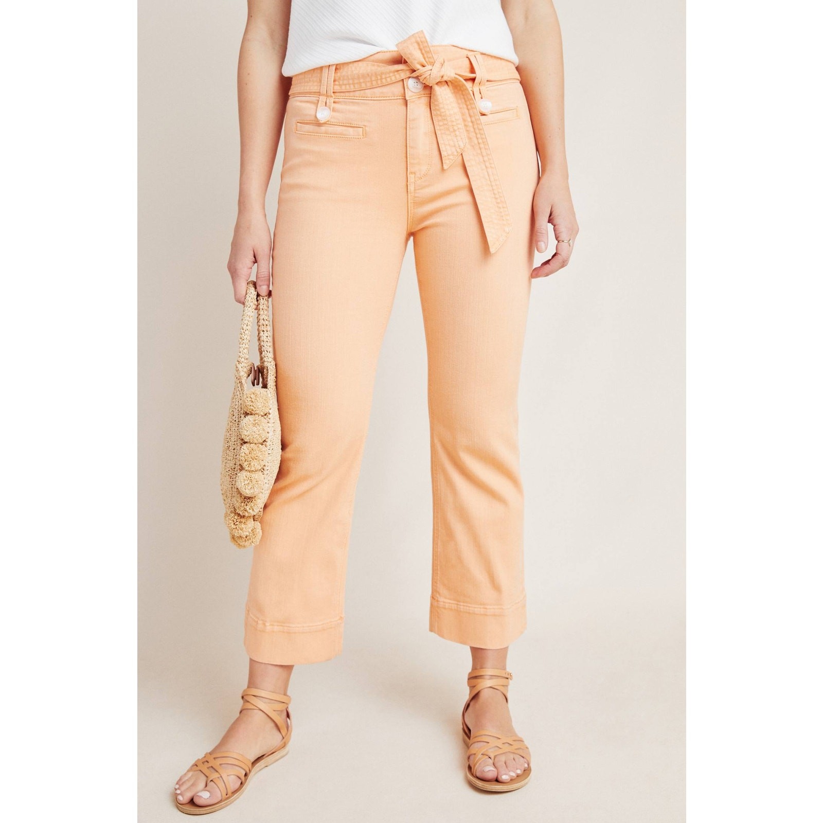New Anthropologie Pilcro High-Rise Cropped Flare Jeans SIZE 25 Belted Tangerine