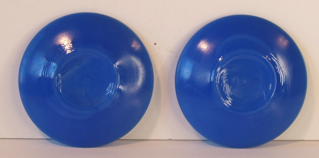 Two Vintage Rare Doll Dishes or Plates by Akro Agate in Dark Blue, 3 in dia.