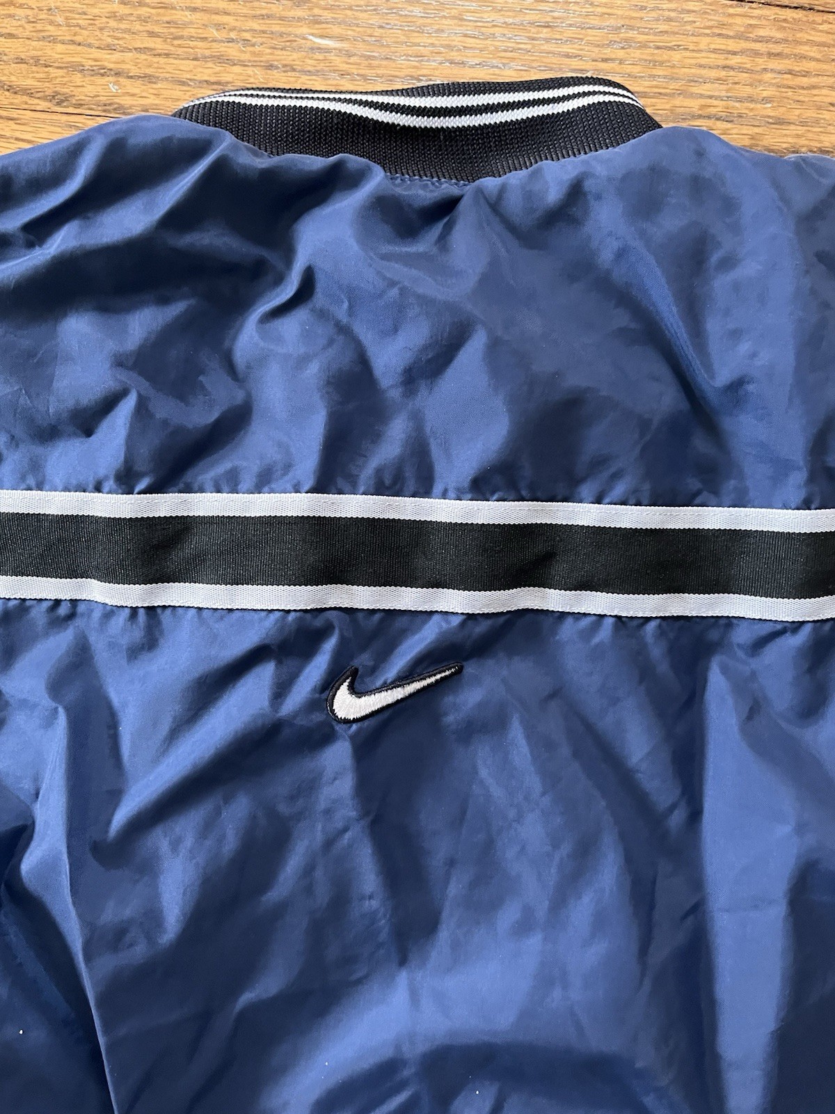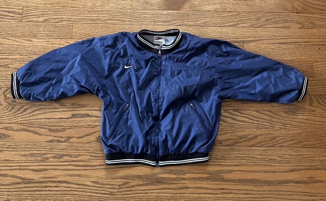 как выглядит Vintage 90s Nike Swoosh Bomber Jacket Puffer Pullover Youth Medium 7 фото