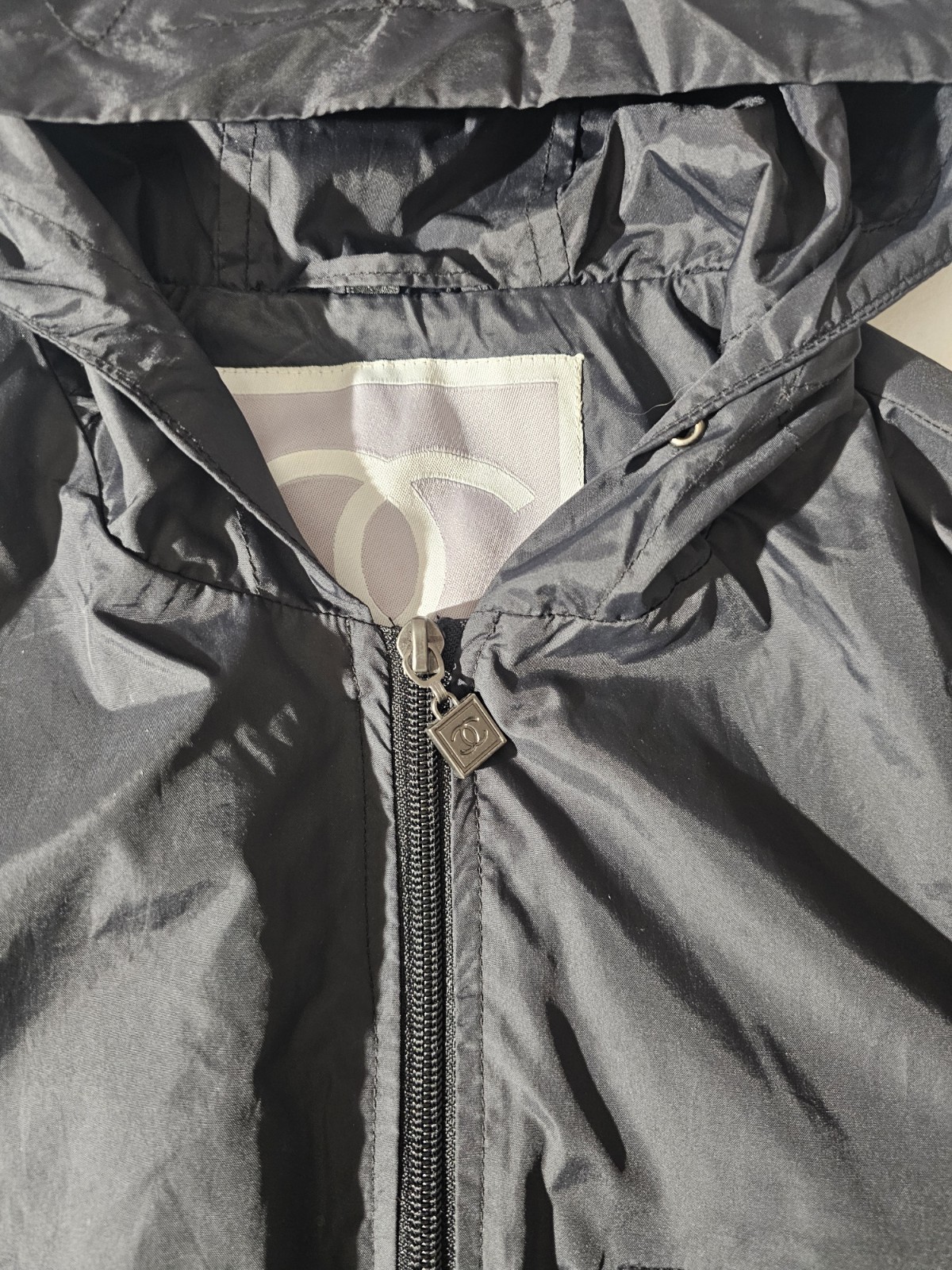 как выглядит Chanel Womens Four Pocket Hooded Zip Up Jacket - Missing Drawstrings фото