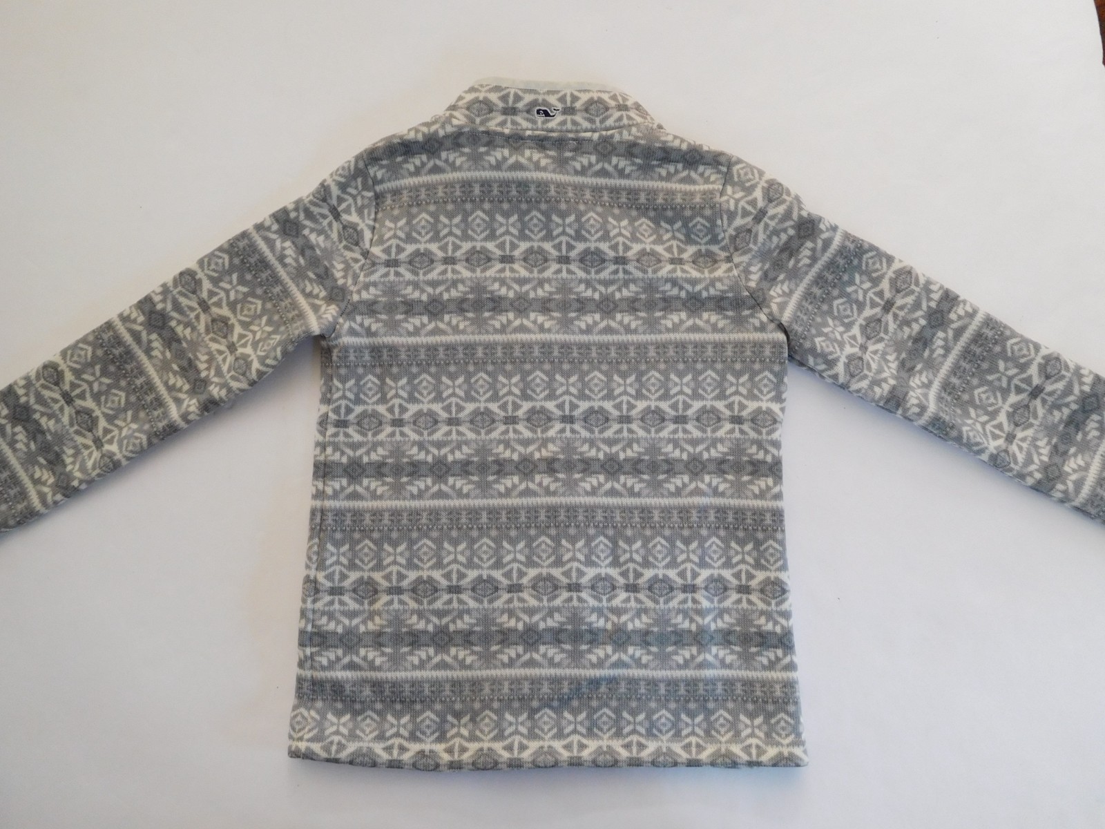 как выглядит Vineyard Vines Fair Isle Full Zip Gray White Fleece Jacket Girls M 10/12 фото