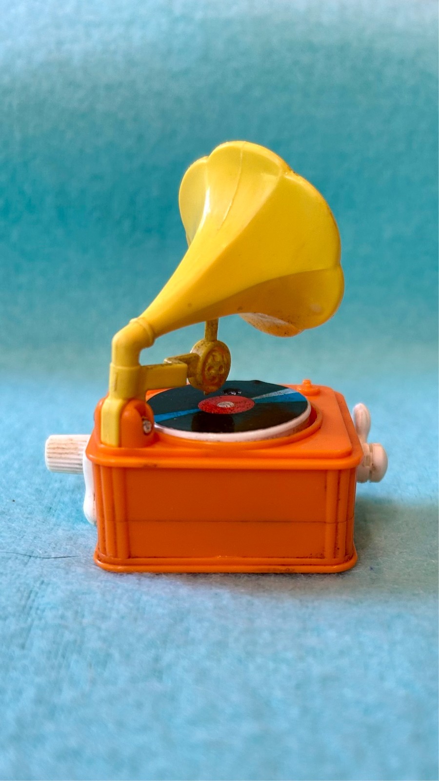 TOMY Wind-Up Clock Work Gramophone Record Player Toy Figure Rare 1980's Vintage