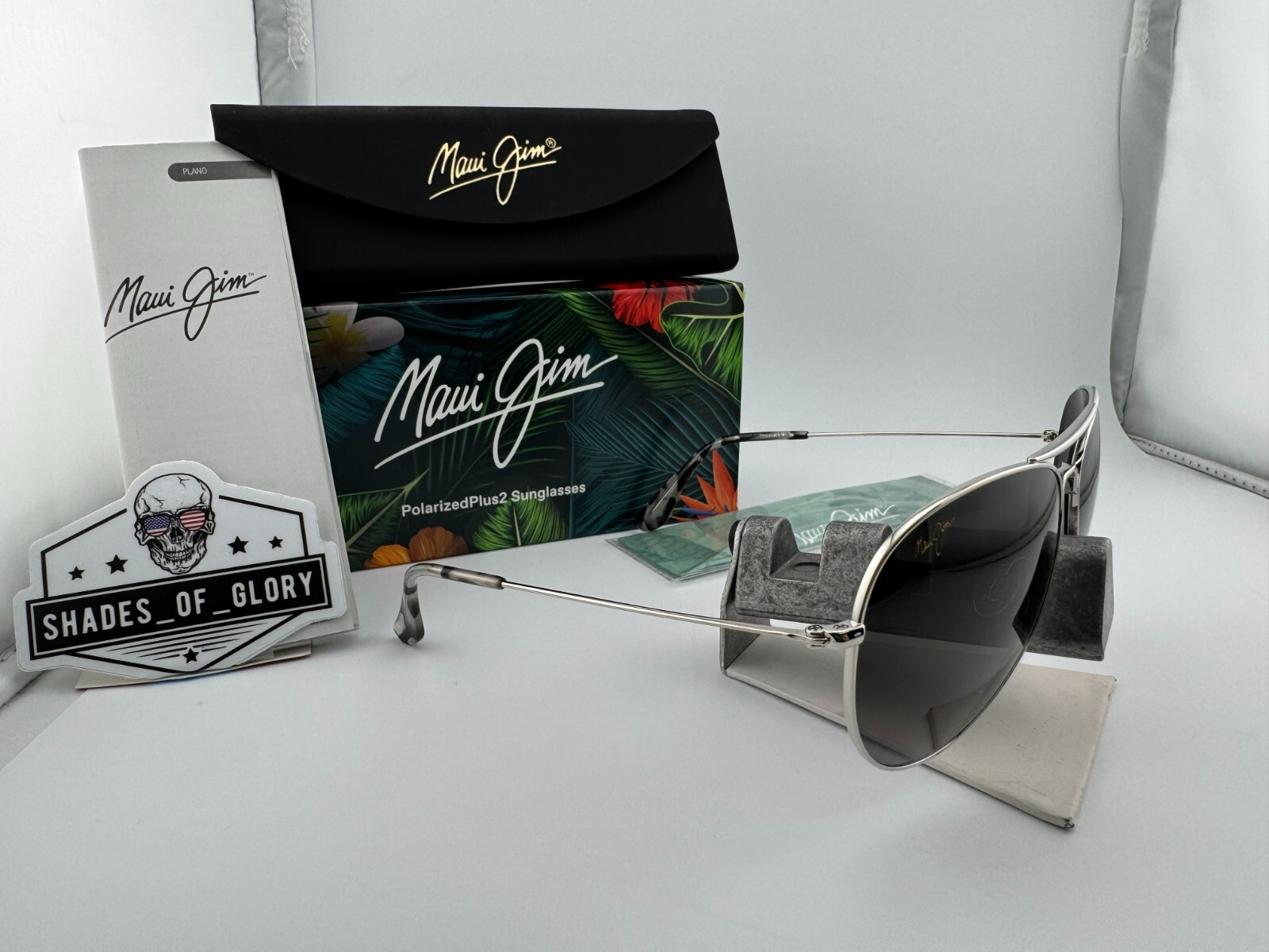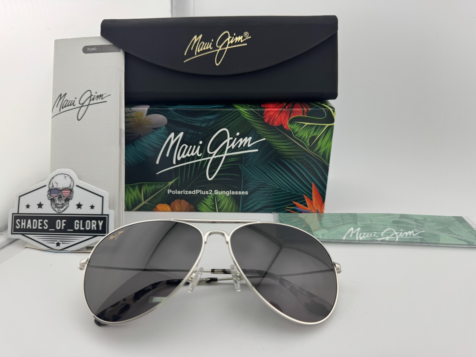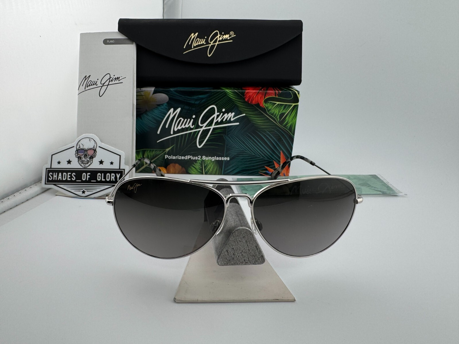 MAUI JIM MAVERICKS MJ GS264-17 SILVER NEUTRAL GREY POLARIZED AVIATOR SUNGLASSES