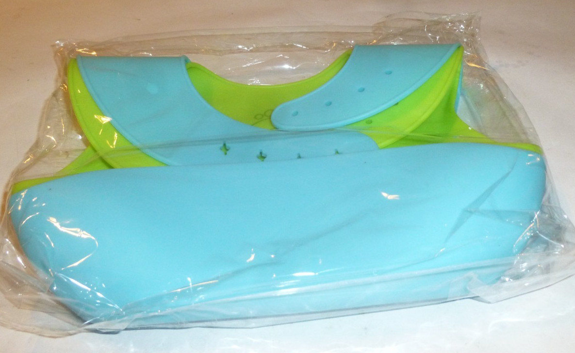 Wee Sprout Silicone Baby Bibs Green Blue PVA BPA Free Wide pocket adjust snap