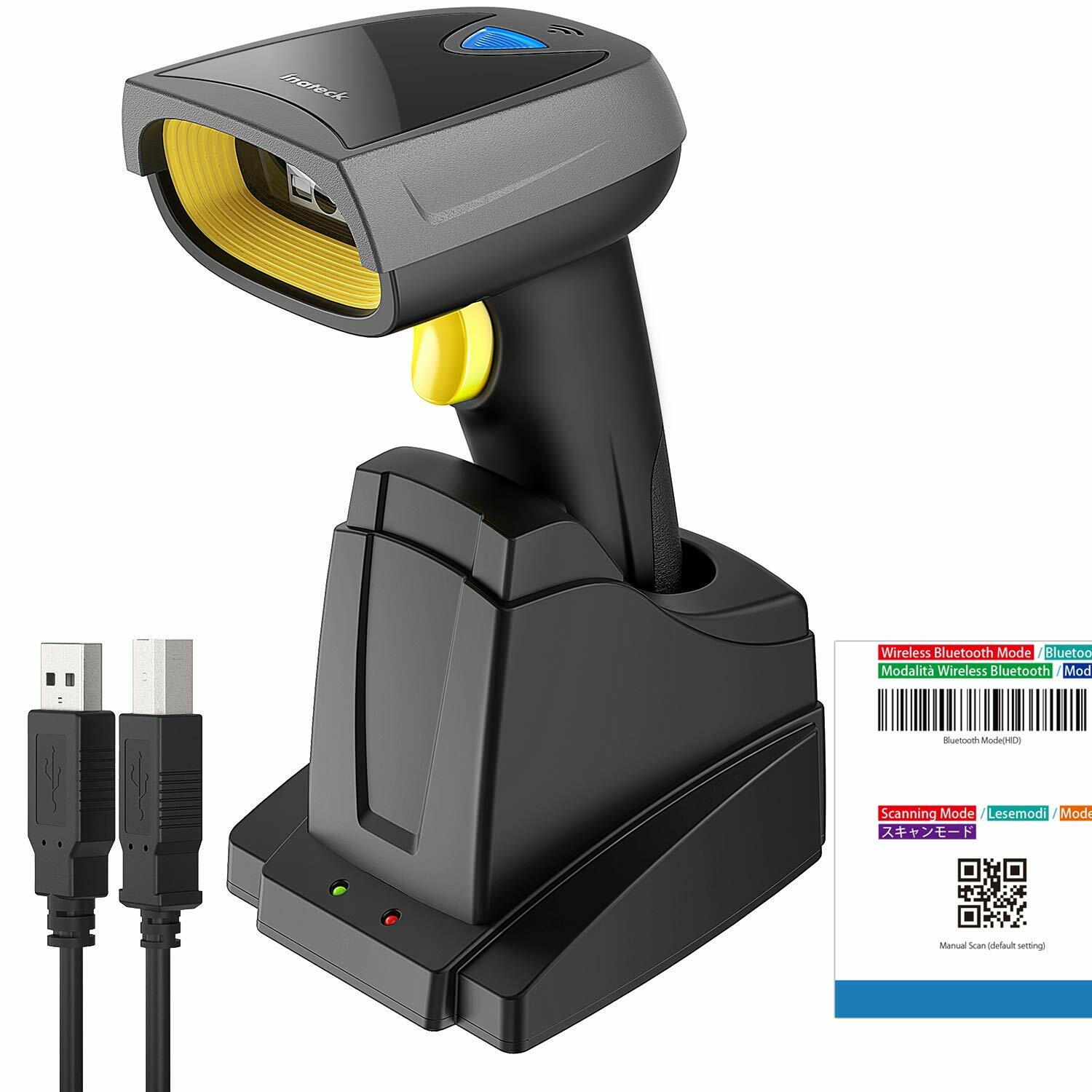 1D 2D Barcode Scanner Wireless Bluetooth QR Code Gun Read Screen Smart Base
