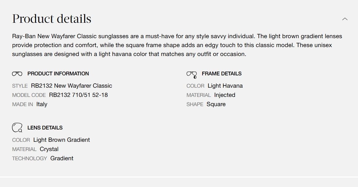 как выглядит Ray-Ban New Wayfarer Sunglasses RB 2132 710/51 Light Brown Havana 55mm w/case фото