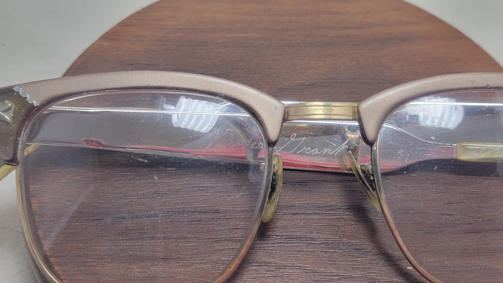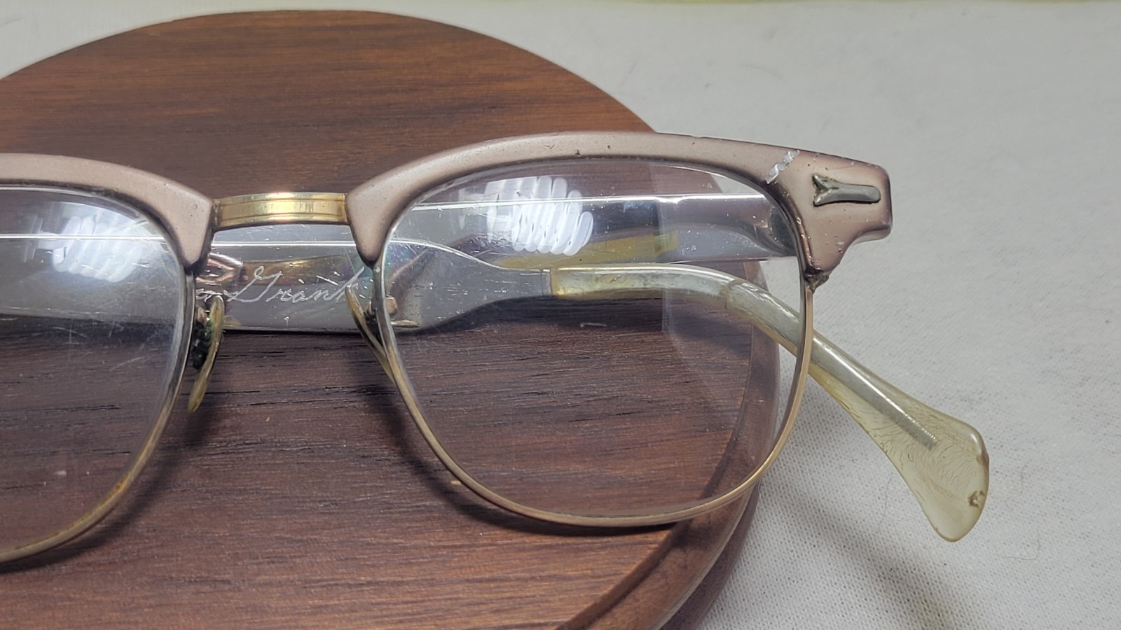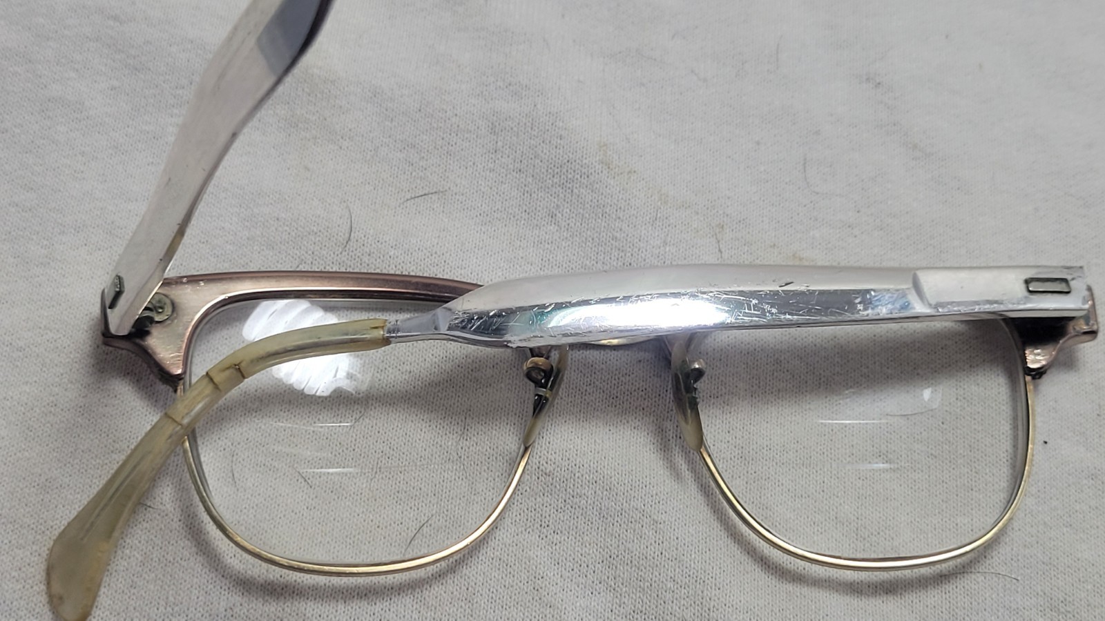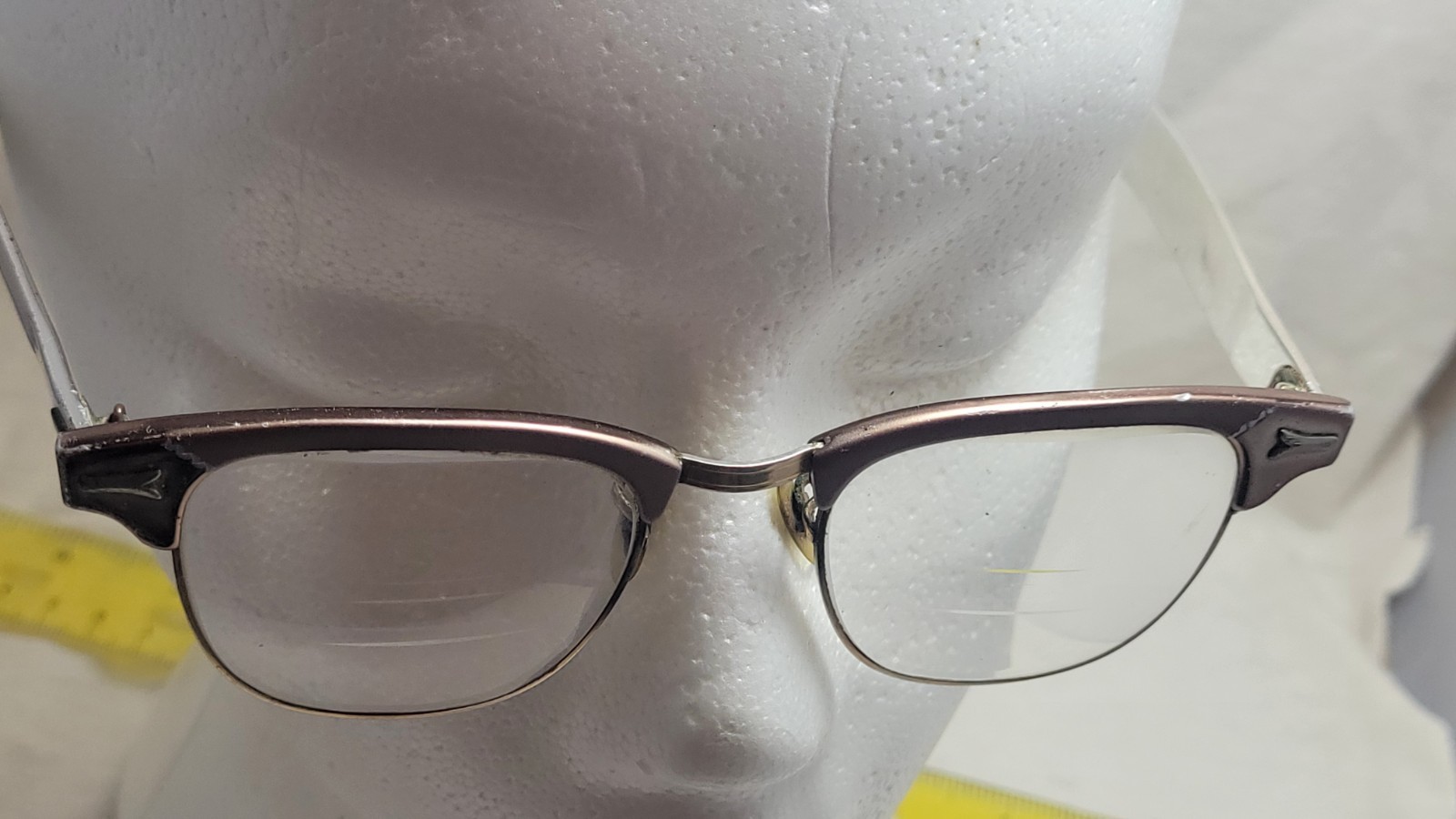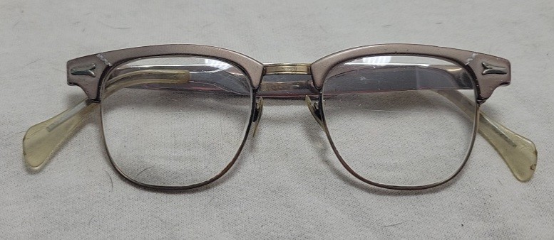 1950 s SR Eye Cat Eye Glasses Aluminum 5 3/4 USA Vintage Bifocal Lenses 12k GF