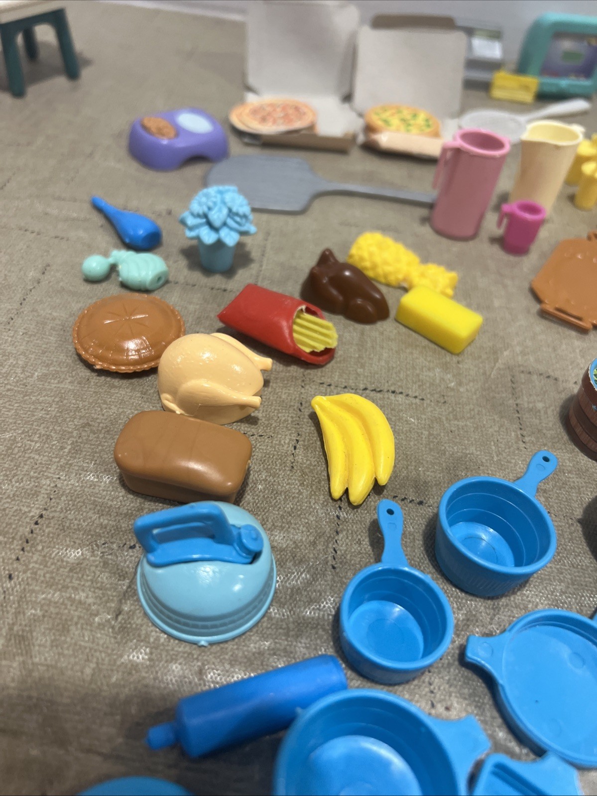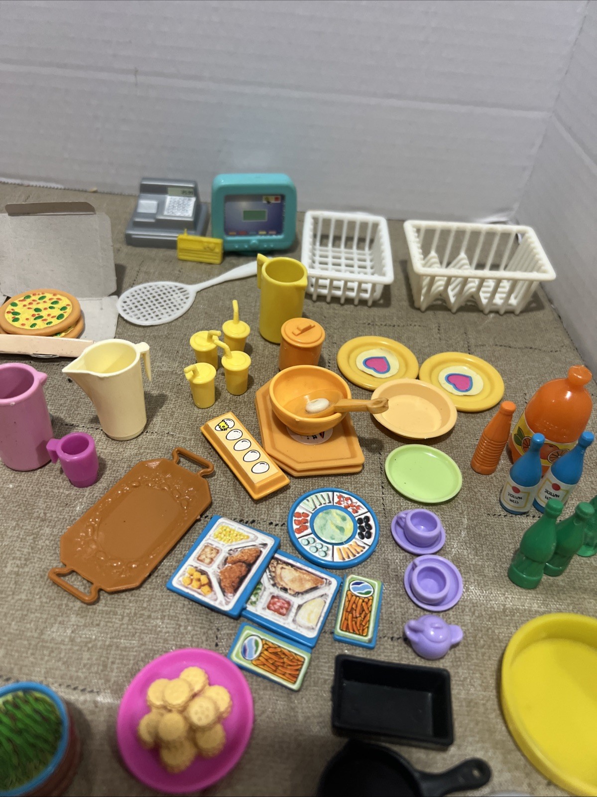 Vintage HUGE Barbie Accessories Food Kitchen Items Cups Pots Drinks Food