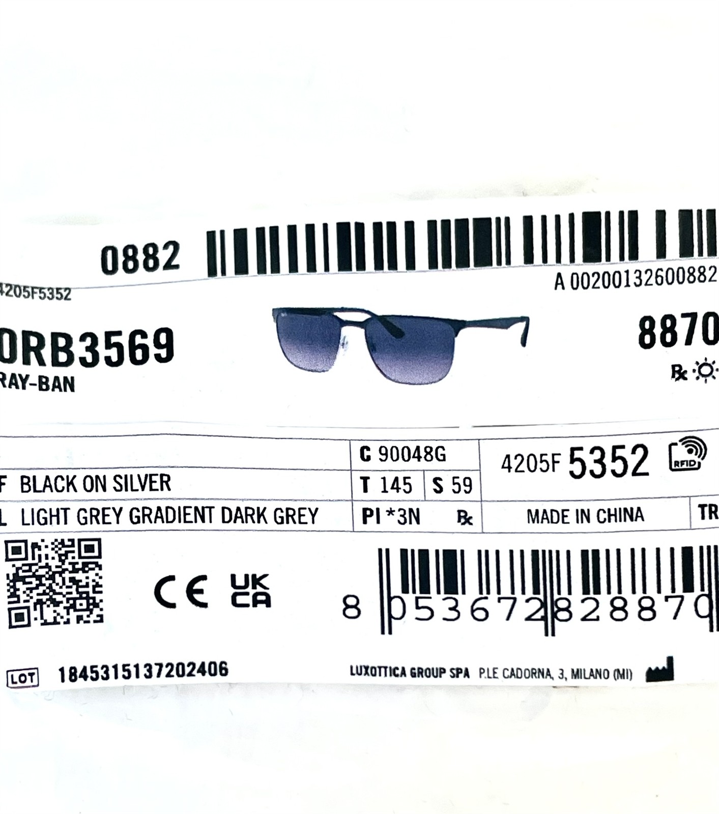 Ray-Ban Sunglasses Shiny Black on Silver Gray Gradient RB 3569 9004/8G with Case