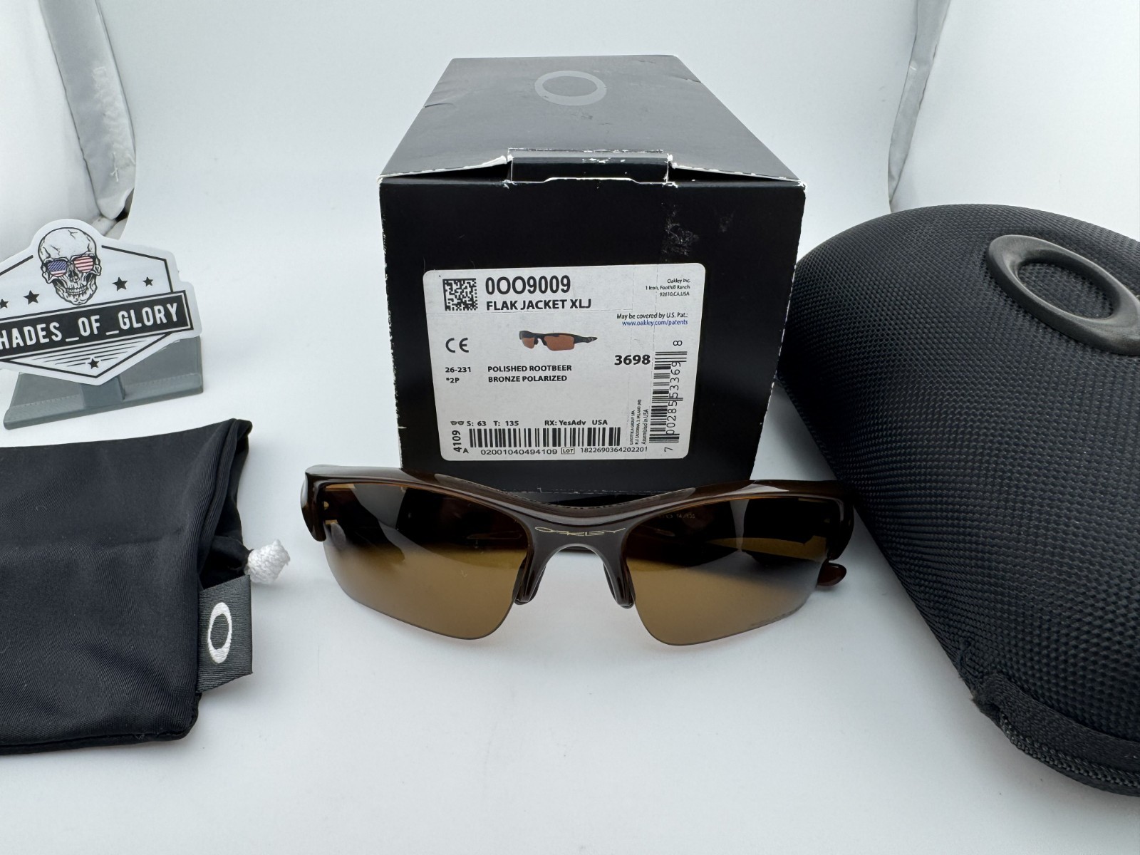 OAKLEY FLAK JACKET 1.0 XLJ POLISHED ROOTBEER BRONZE POLARIZED 26-231 SUNGLASSES